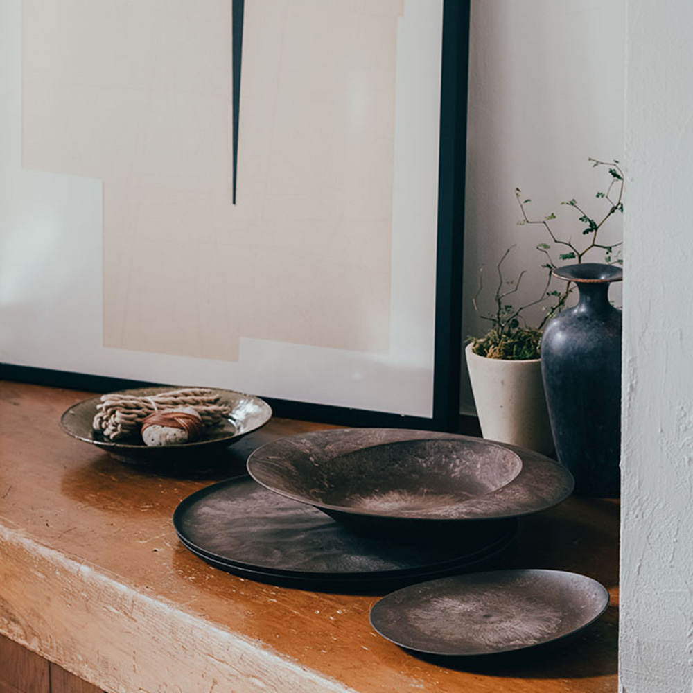 ・万が一油じみができた場合は、木製品のメンテナンスと同様に、オリーブオイル等をキッチンペーパーなどで拭き上げることで、器全体がオイルでコーティングされ、油染みを防ぐことができます。色が濃くなるなど器の表情に変化はございますが、より永くお使いいただけます。経年変化をお楽しみください。