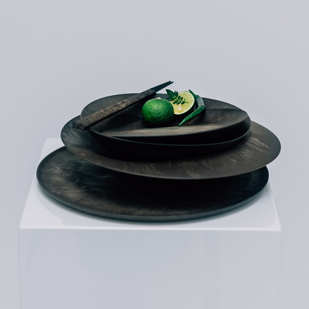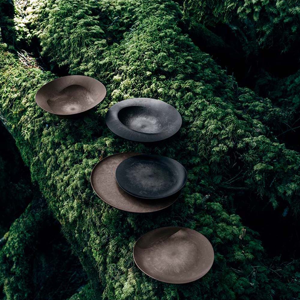 重ねてもコンパクトに収まるため収納するときに幅をとりません。素材はポリプロピレンと廃材にされる自然由来の杉皮原料を50%含ませて成形されています。テーブルの上で自然を感じるオーガニックな料理や、アウトドアでも雰囲気を上げてくれるお皿です。