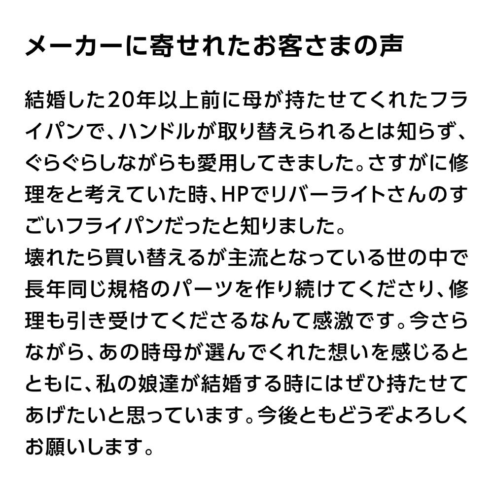 「良い道具は、使い手の生活の質を向上させ、人生をより豊かにするきっかけにもなり得るものだ。そういう道具を作っていこう。」それがリバーライトの仕事です。