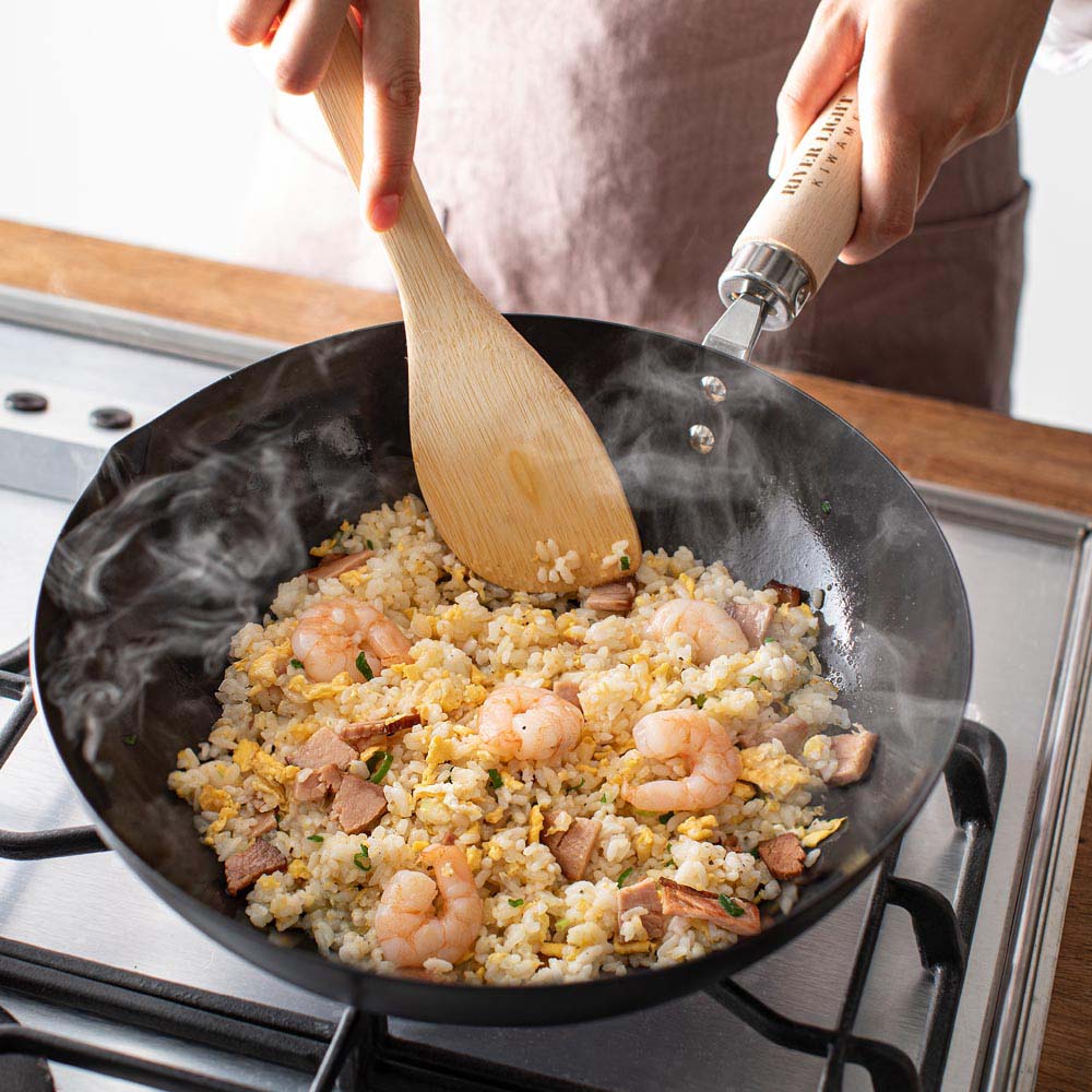 深さがあるので炒飯や野菜炒めに活躍。たっぷりの熱量でご飯の水分を一気に飛ばせば、お店で食べるようなパラパラ炒飯が完成します。