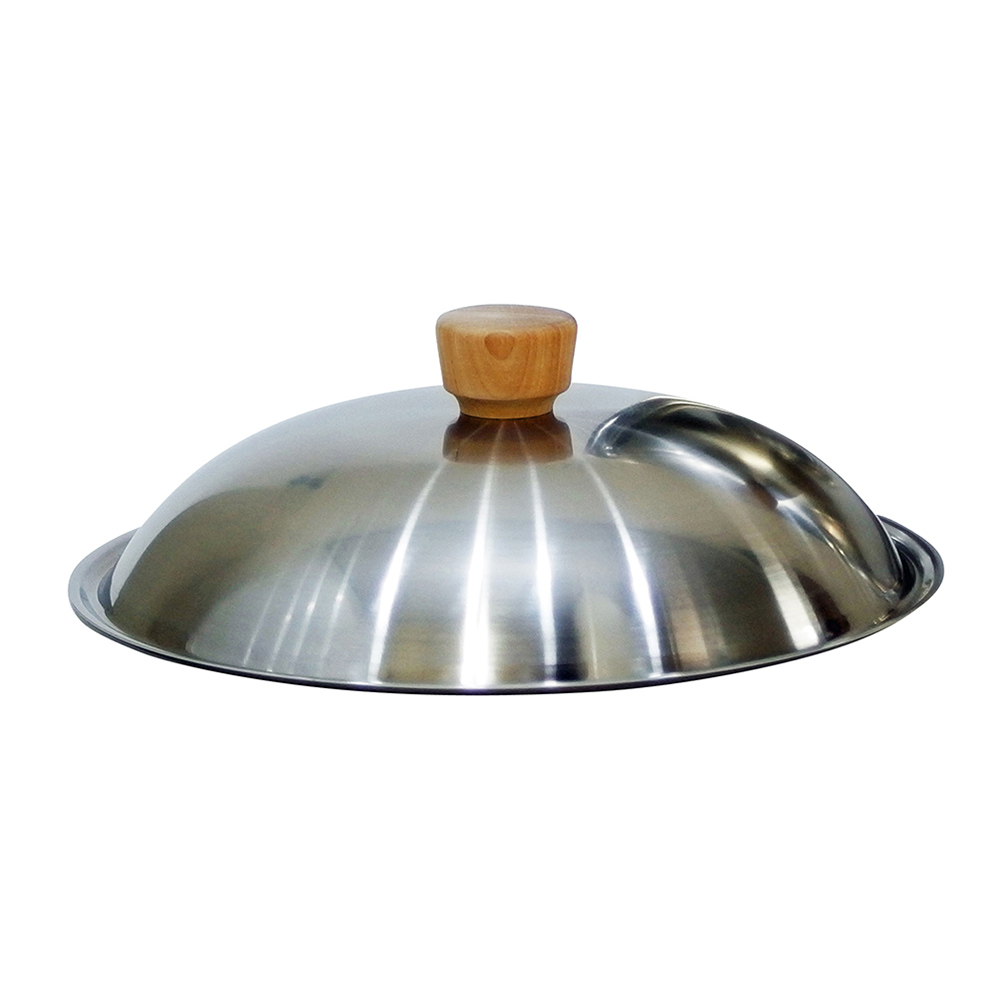 フライパンや鍋の大きさに合わせて、20cm、26cm、28cmのステンレスフタもご用意しています。つまみは木製なので熱くならないほか、木ならではの温もりが感じられます。商品画像の説明