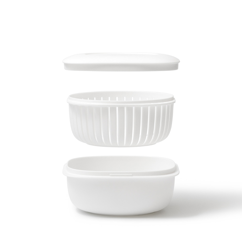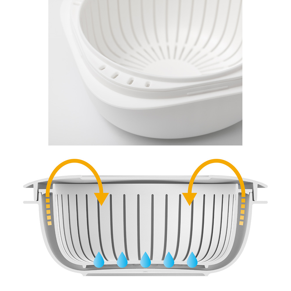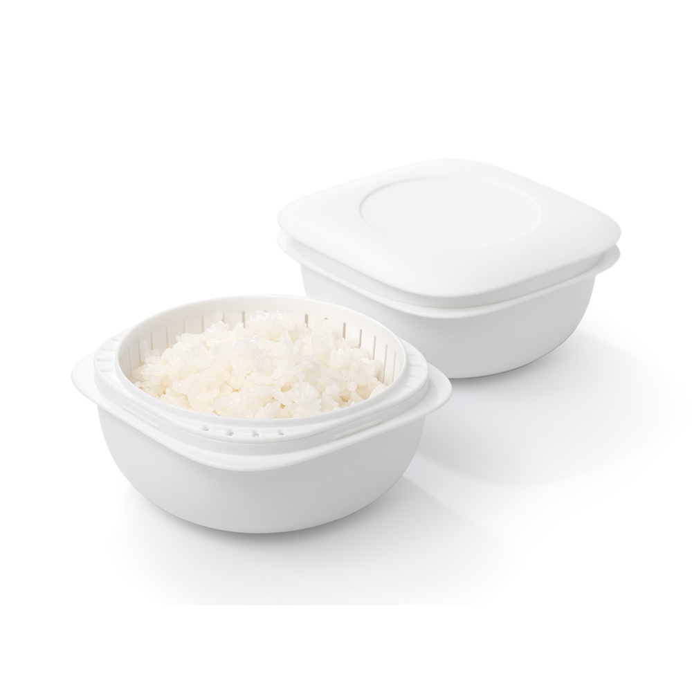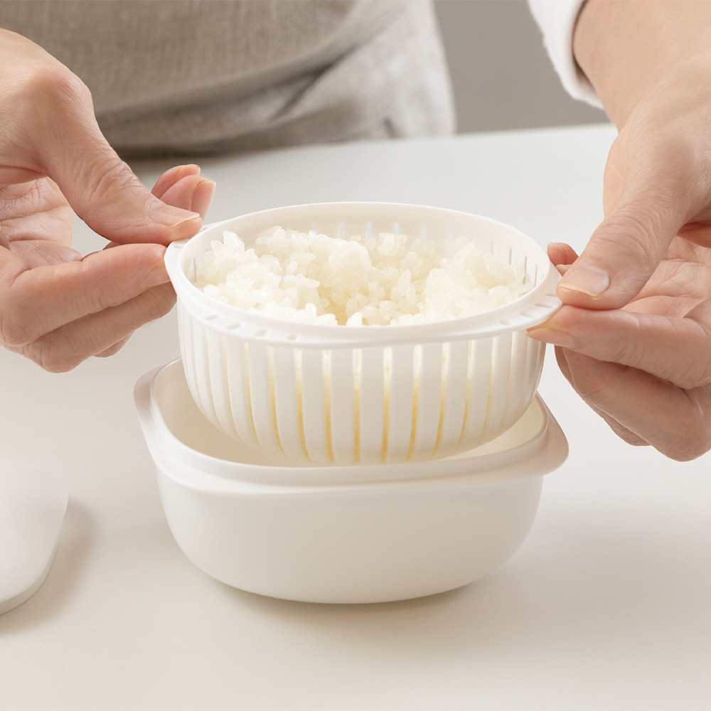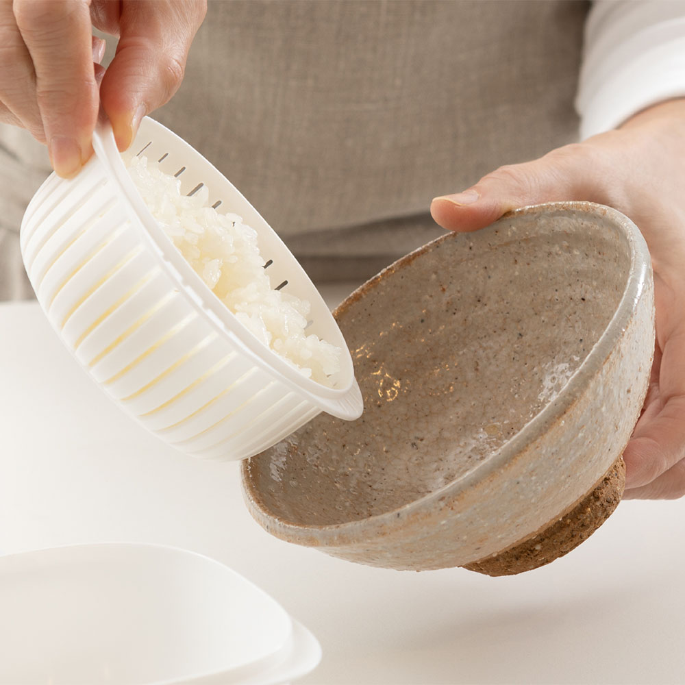• 「ザル型2重構造」なので余分な水分が下に落ちてご飯がベタつかない
