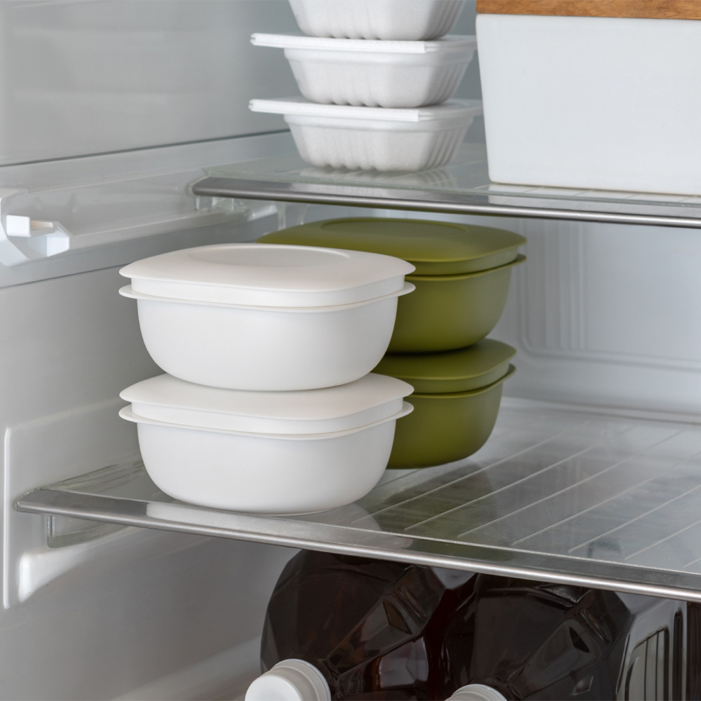 • 本体底面とフタ天面がしっかりハマって、積み重ねてもズレにくい仕様。