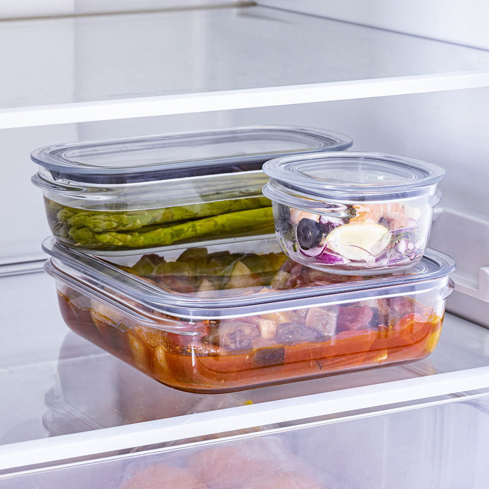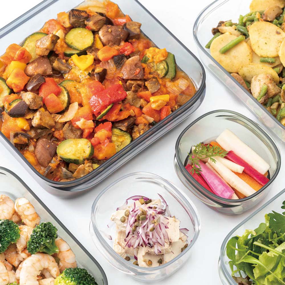 Sサイズは少し残ったおかずの保存にぴったり。Mサイズはアスパラなどの長さのある食材も収まります。お弁当箱代わりにも使えて便利。Lサイズはメインのおかずや作り置きを入れるのにちょうどいい大きさで、ご飯なら約3膳分を入れられます。