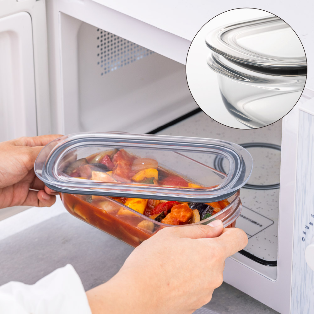 持ち手が付いているので、電子レンジで温めた容器を取り出すときやふたの開け閉めに便利です。 ※レンジ加熱の際は必ずふたを開けた状態でご使用ください。