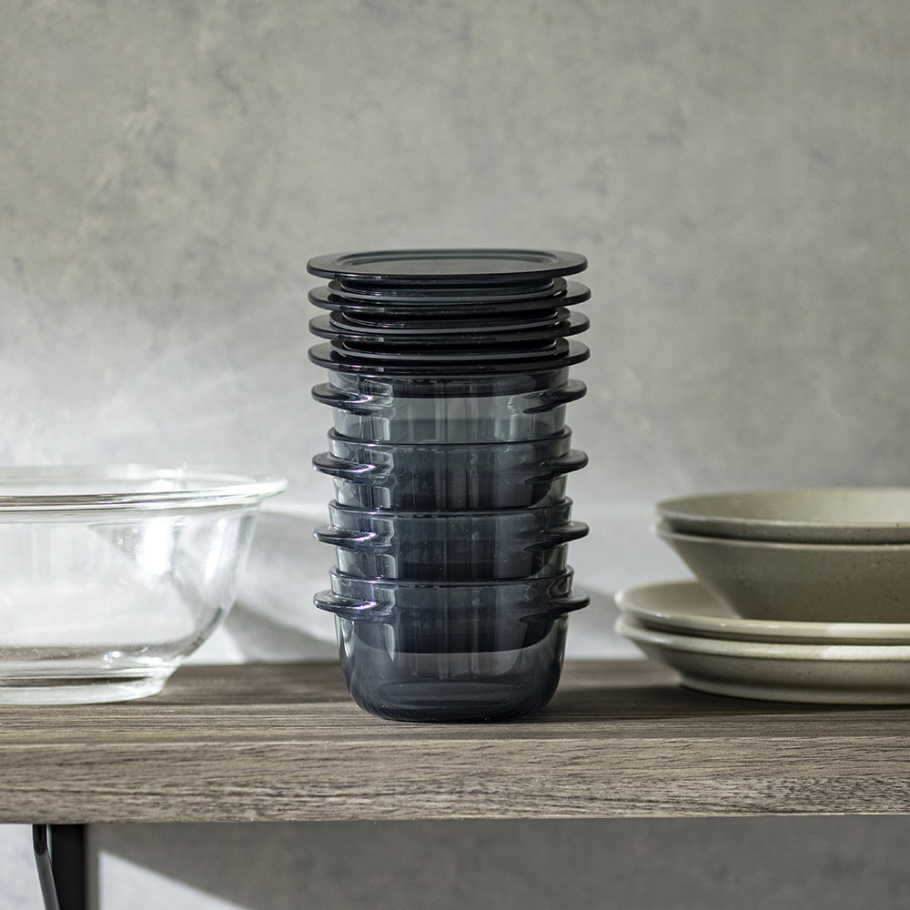 スタイリッシュなグレーでも中身はしっかり確認できます。中身がひと目で確認できるので、「この容器には何を入れていたっけ?」と迷うこともありません。商品画像の説明