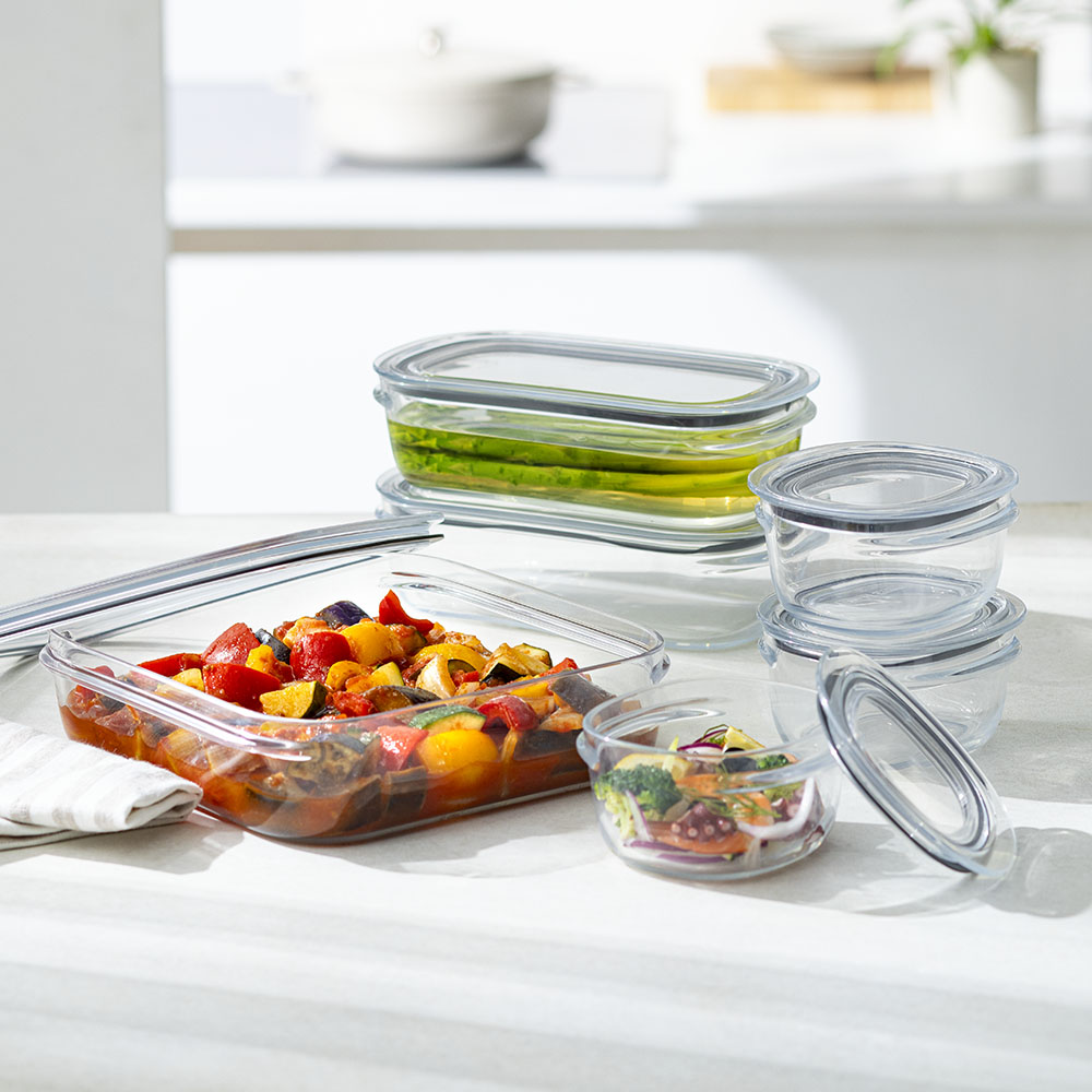 気づけばどんどん増えてしまう保存容器。ふたや本体をパーツごとに重ねられるので、キッチンの空間を無駄なく使えます。