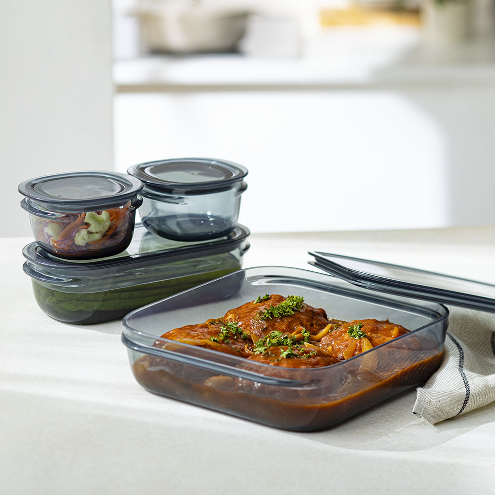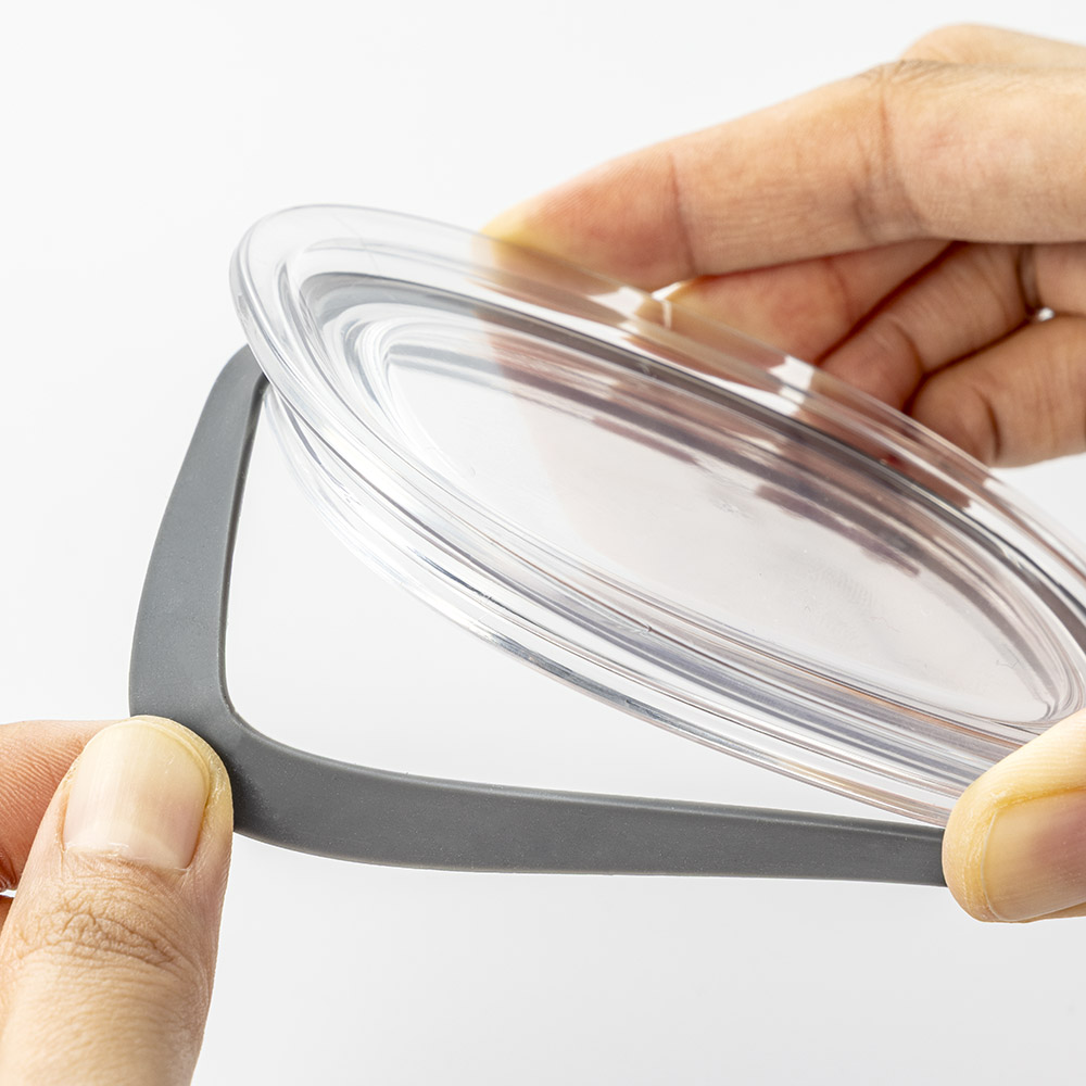 シリコンパッキンがしっかり密閉してくれるので、汁漏れやニオイ移りの心配もなく、冷蔵庫での保存にも安心です。