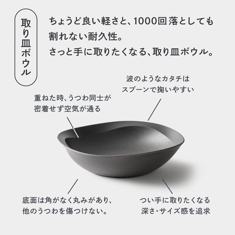 ミニサイズの豆皿スクープが付いた特別セット。小さな副菜やディップ、薬味入れとして活躍する10cmサイズは、あると重宝する万能アイテムです。醤油皿、薬味皿、タレ皿としてはもちろん、小さなお菓子や、ティーバッグ置き場、アクセサリーの一時置きにも便利です。深皿スクープとデザインが統一されているので、テーブルコーディネートが一層映えます。耐久性に自信があるからこそ「生涯破損保証」付き。
