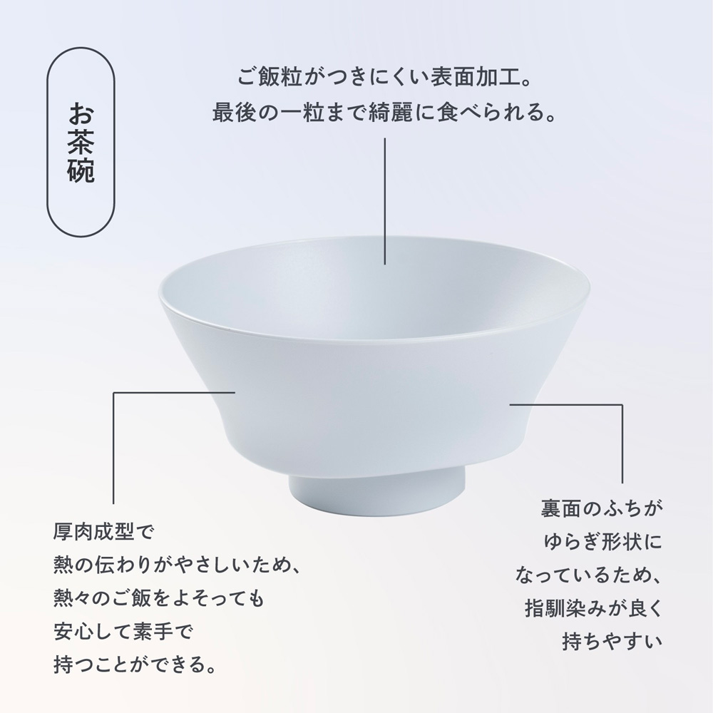 3) お茶碗×2個 - 指馴染みが良く持ちやすい大きさは日本の食卓にぴったり