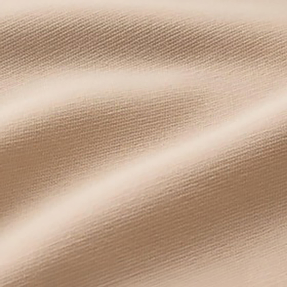 (ア)ベージュ 生地アップ 側地はふんわりなめらかで肌沿いのよいニット素材です。
