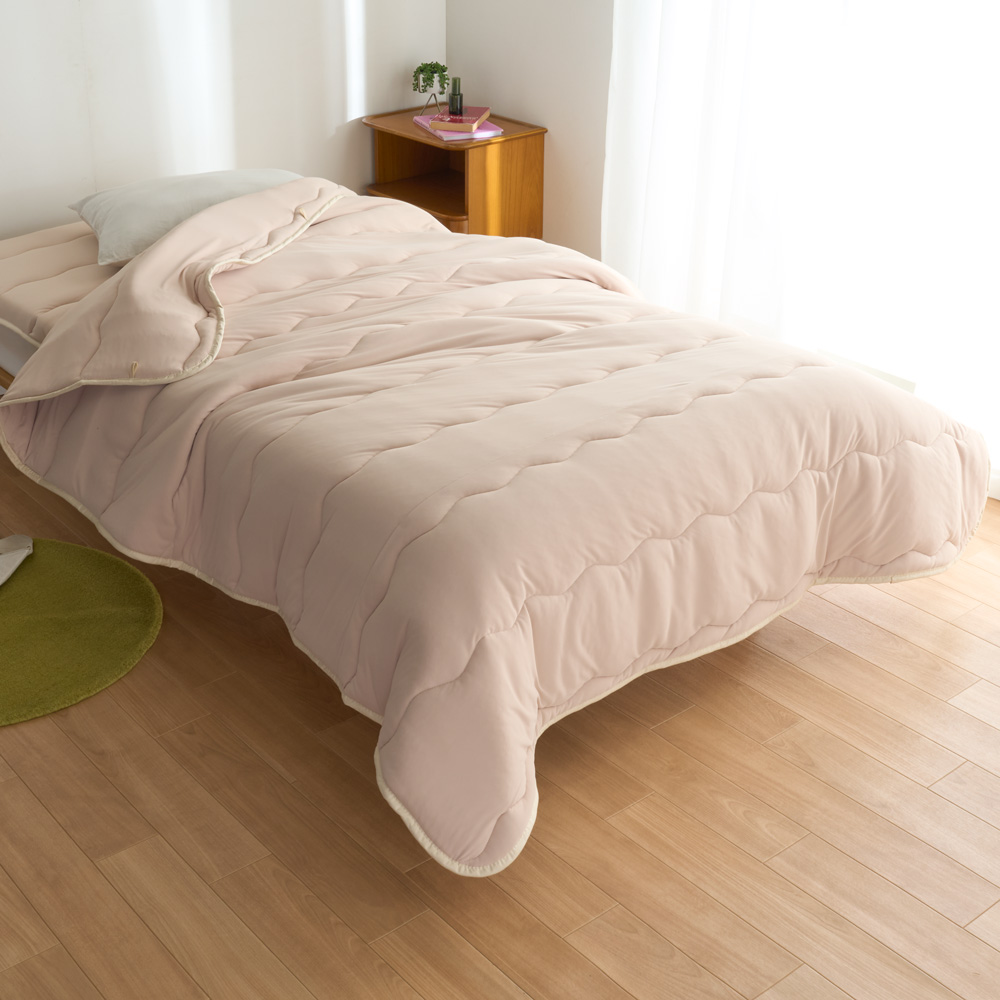 (ア)ベージュ 左側はケット(敷きパッド別売)、右側は2枚合わせ掛け布団(別売)。2枚合わせタイプは、組み合わせで年中使えてコスパ◎商品画像の説明