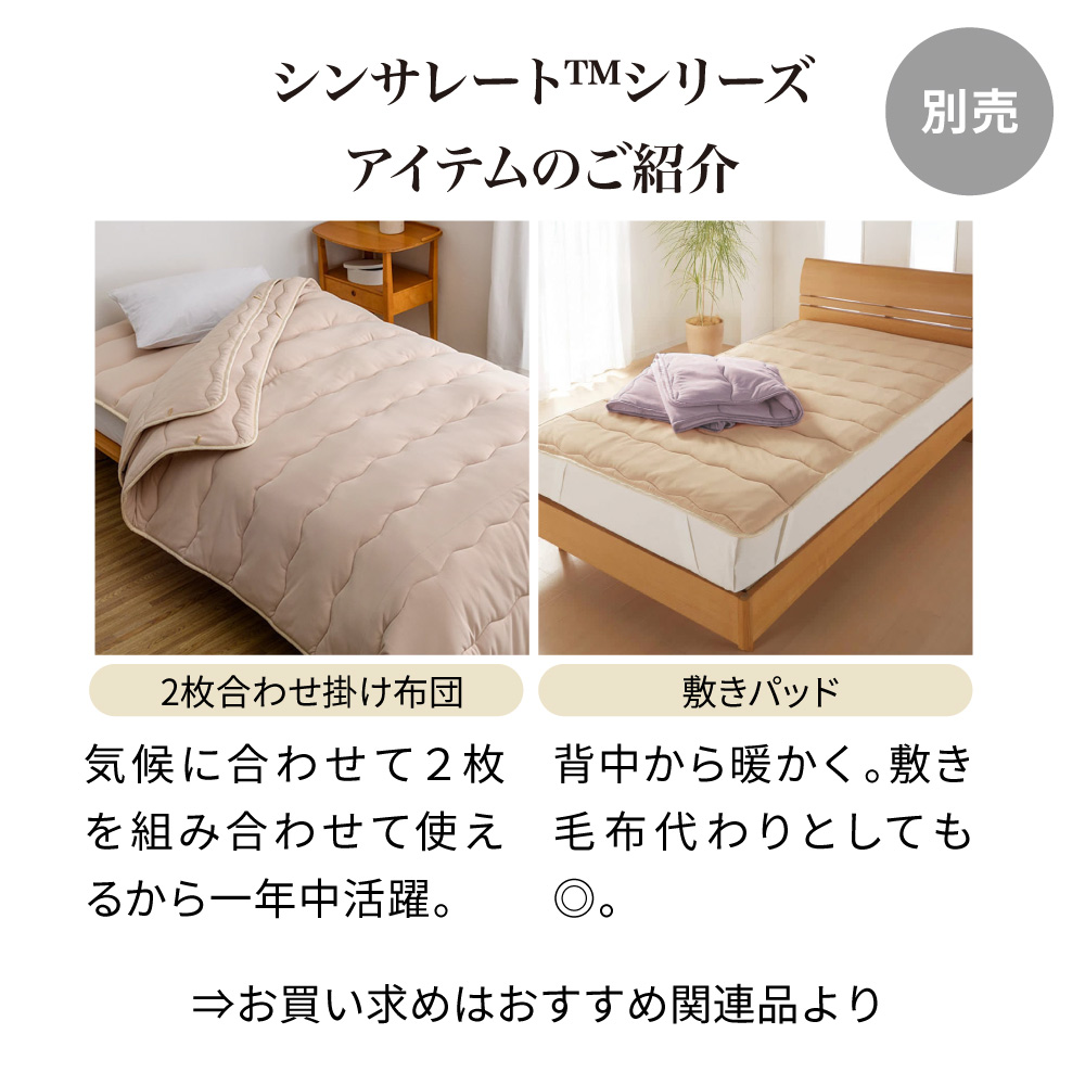 同シリーズの敷きパッドとの合わせ使いで、全身ポカポカに。※お届けはケットです。敷きパッドは別品番になります。