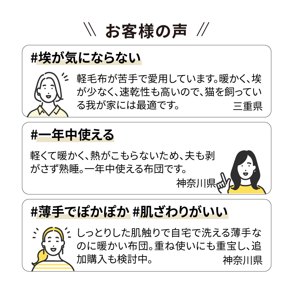 高級羽毛布団並みの軽さと暖かさにうっとり