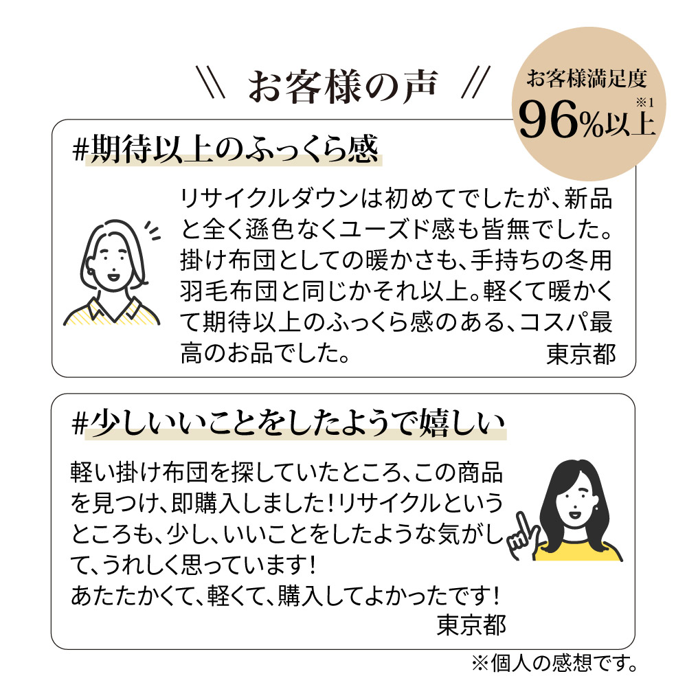 ≪セミダブルロング≫リサイクル羽毛掛け布団〈reumo/リウモ〉 レギュラータイプ 羽毛掛け布団 623811のレビュー