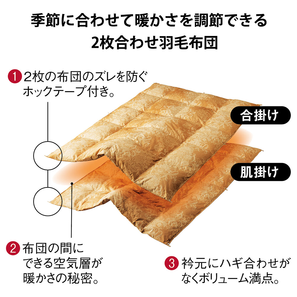 季節に合わせて暖かさを調節できる2枚合わせ羽毛布団