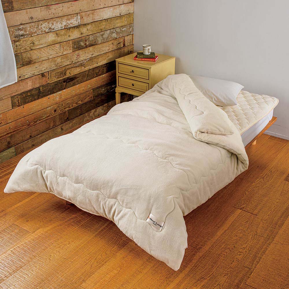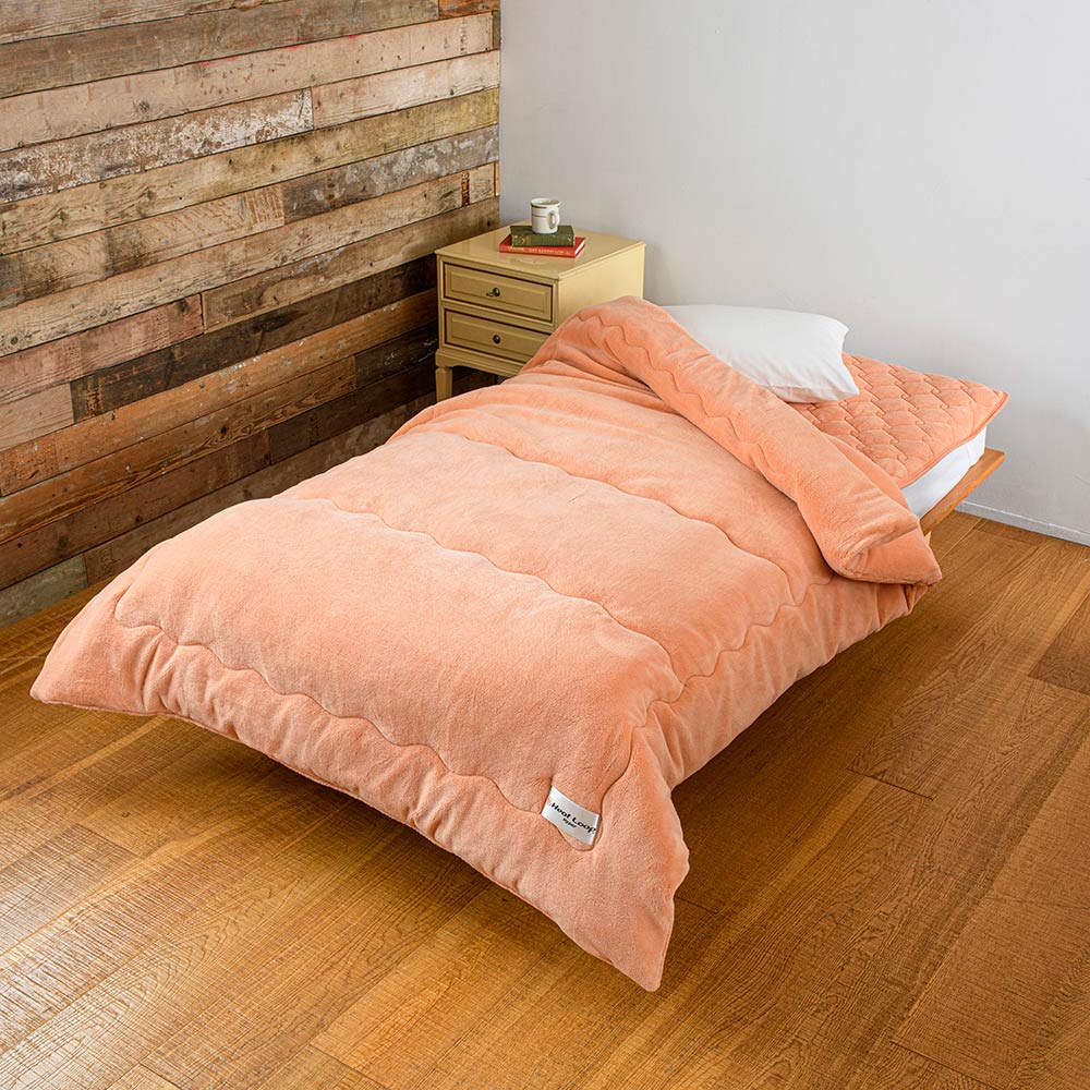 ケット上側と敷きパッド下側に断熱効果のある遮熱アルミ生地を使用し、厳しい冷え込みや床からの冷気をブロック。やわらかなアルミシートを採用することで肌沿いも◎。