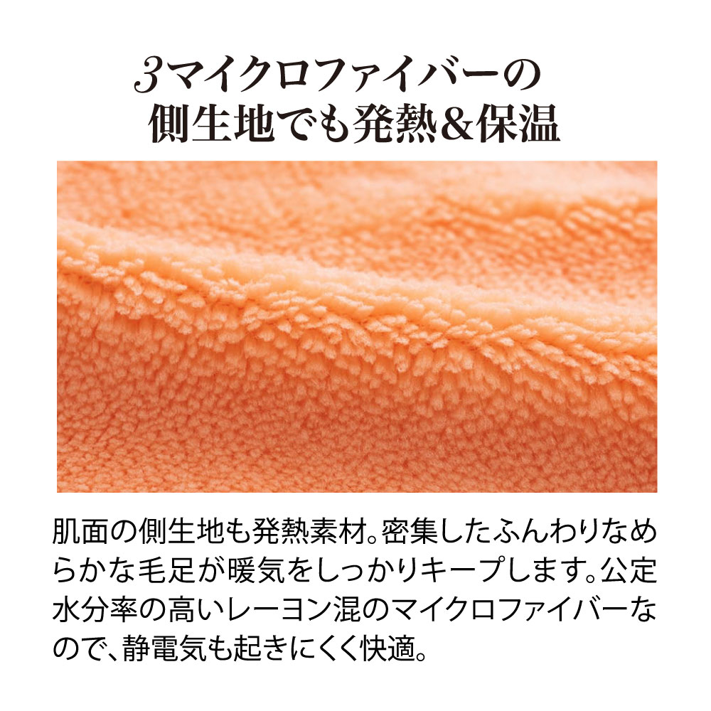 肌面の側生地が発熱素材にリニューアルしてさらに暖かく!毛足の密集したふんわりなめらかなマイクロファイバーが暖気をしっかりキープ。また公定水分率の高いレーヨン混になり、さらに静気が起きにくく快適に。