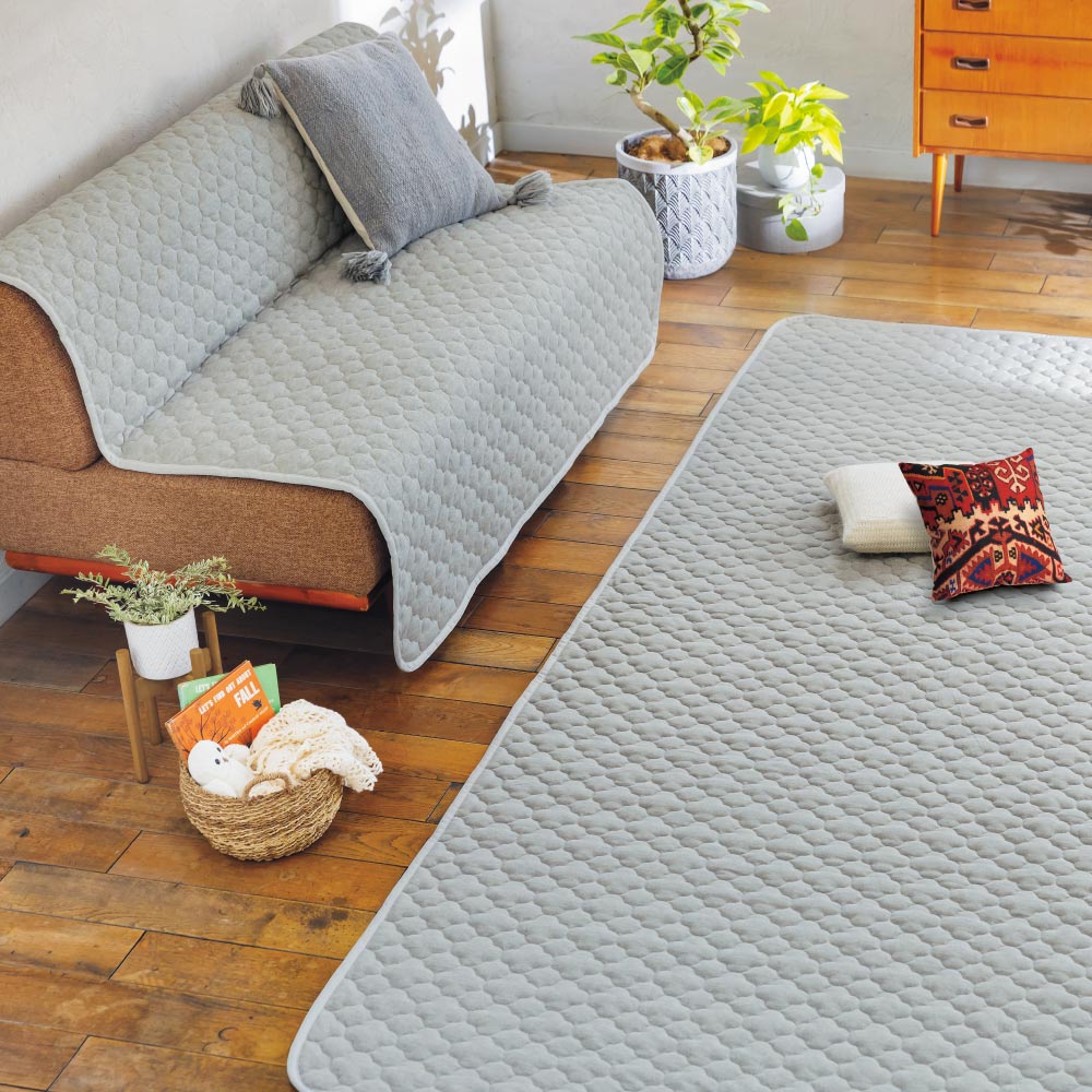 • (ア)グレー(写真はキルトラグ約190×280cmとソファカバーアームなし・3人掛をコーディネート)