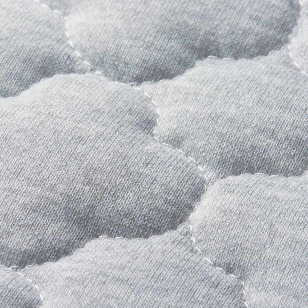 • 上から(ア)グレー (イ)グリーン (ウ)ネイビー(素材アップ) 綿混のメランジスウェット地に施したキルトステッチでフワサラの感触に。