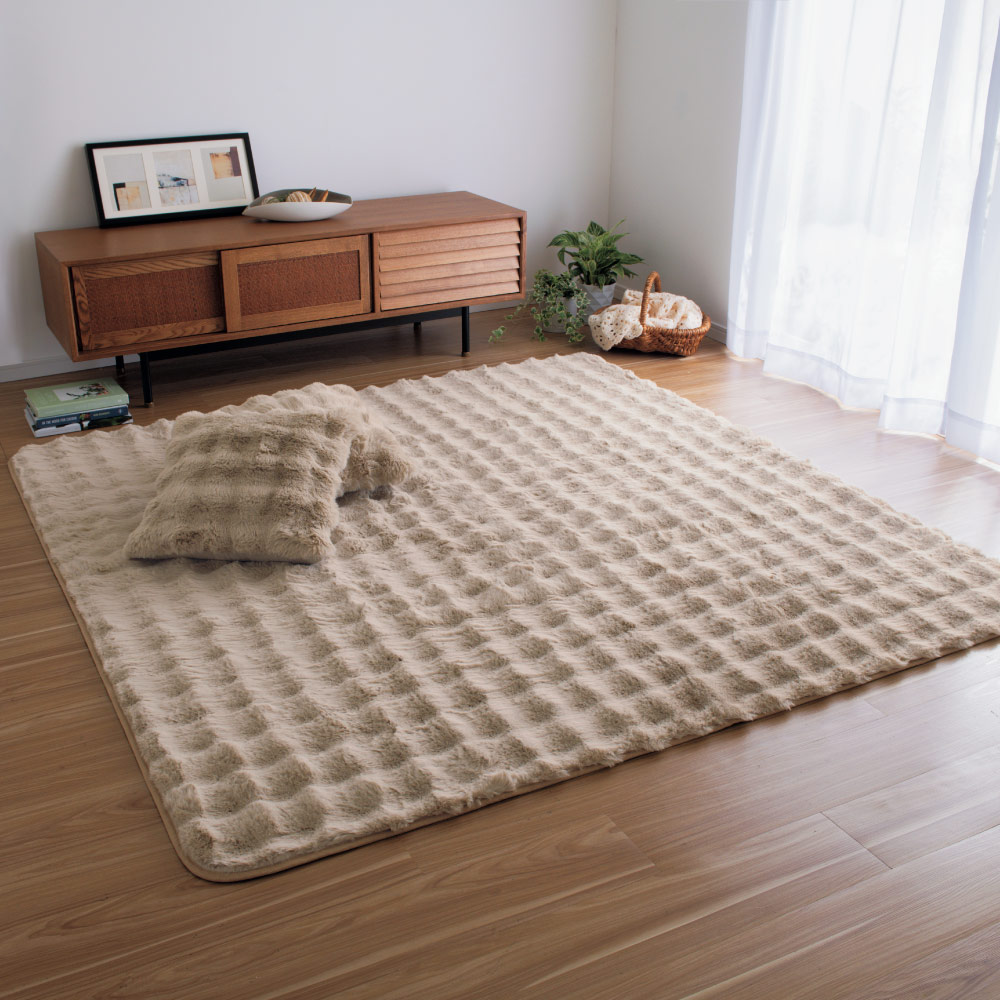 ≪約190×240cm≫ Lapin Luxe/ラパンリュクス はっ水ファー調ラグ 洗えるラグ カーペット ラグ マット 615510