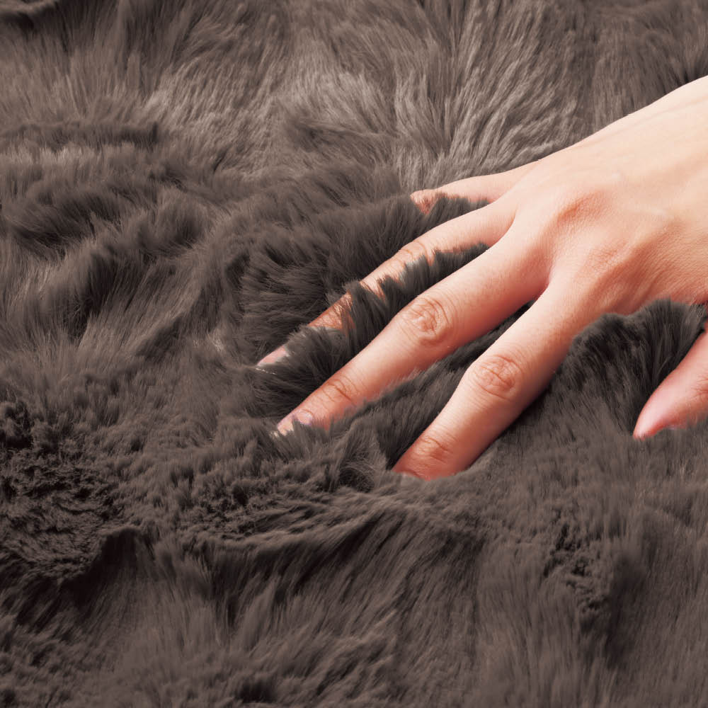 はっ水加工を施したふわふわのファー素材。飲み物などをこぼしてもしみ込みにくく、サッと拭き取れてお手入れ簡単。長くきれいにご愛用いただけます。商品画像の説明