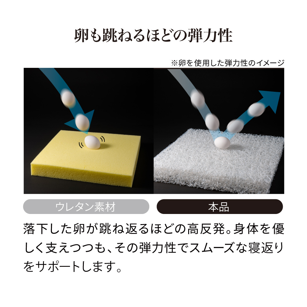 特殊な3次元網状態繊維により、体重がかかっても沈みこまず押し返し、重さのかかりやすい腰と肩をしっかり支えます。