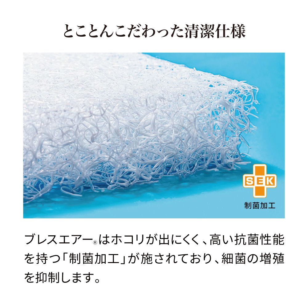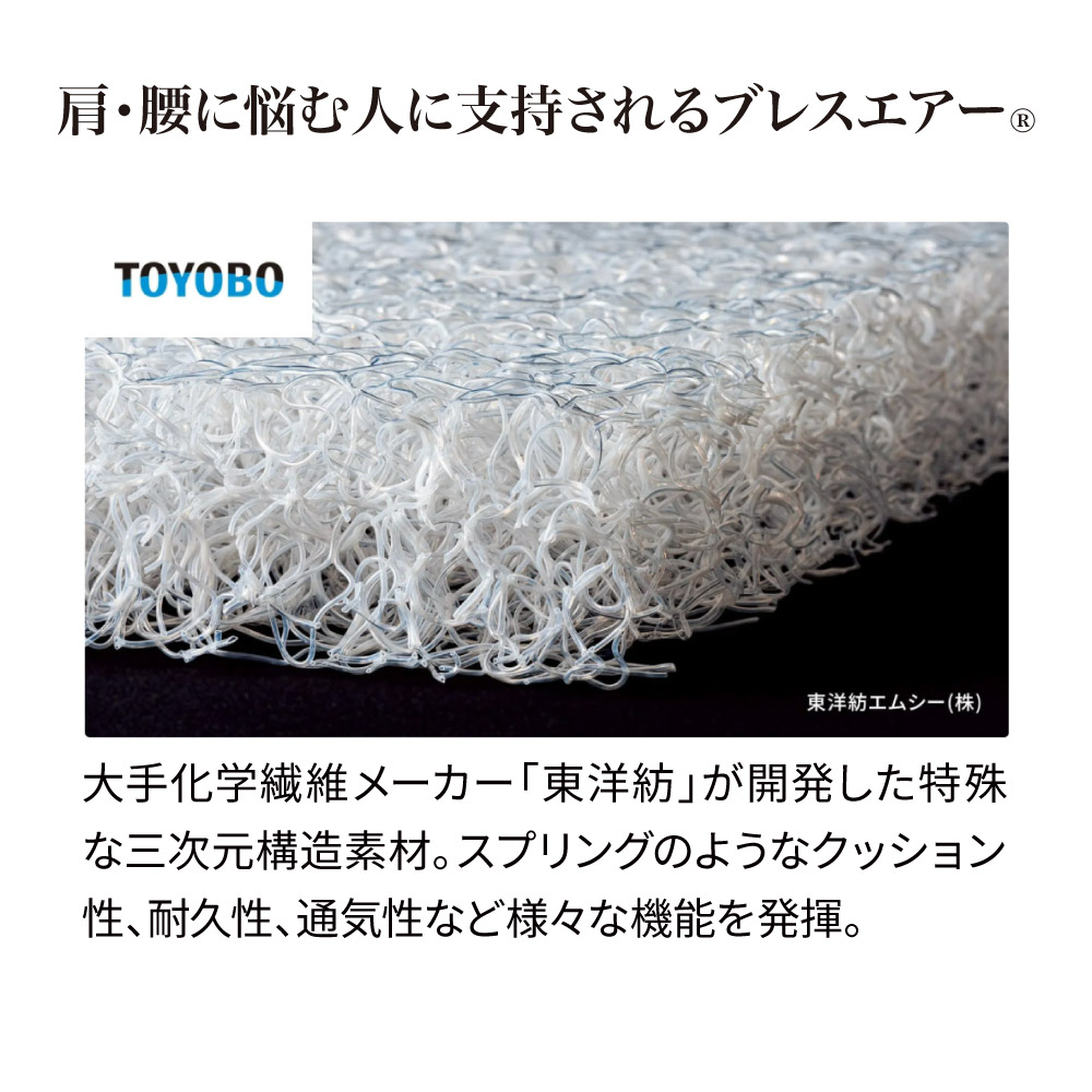 つらい肩腰を力強く支えるブレスエアー(R)敷布団の上位シリーズ。やわらかな寝心地・サポート力・寝返りのしやすさにとことんこだわった、高級旅館のような寝心地です。