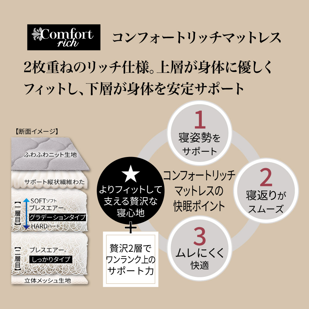 ≪セミダブル≫朝が違う。リッチな寝心地!ブレスエアー(R)3つ折りマットレスコンフォートリッチ(厚さ約10cm) 敷布団 送料無料 624603