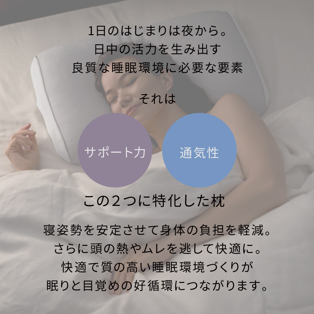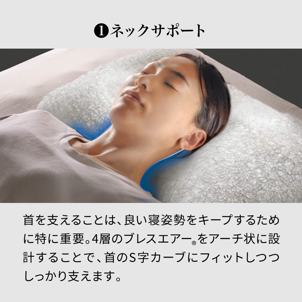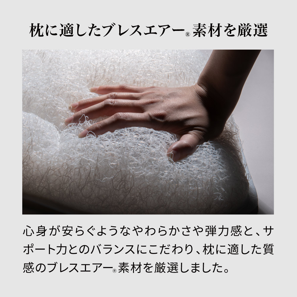 弾力性・通気性に優れる素材「ブレスエアー」の特性を活かし、眠りと目覚めの好循環を生む枕。