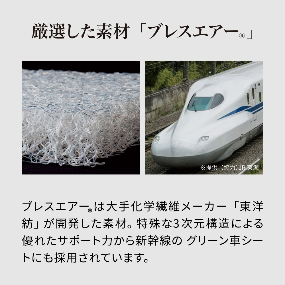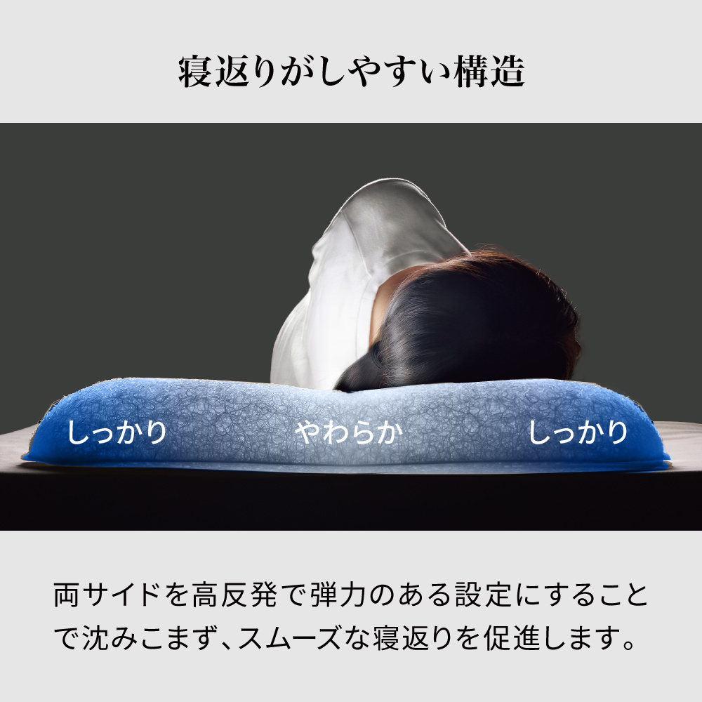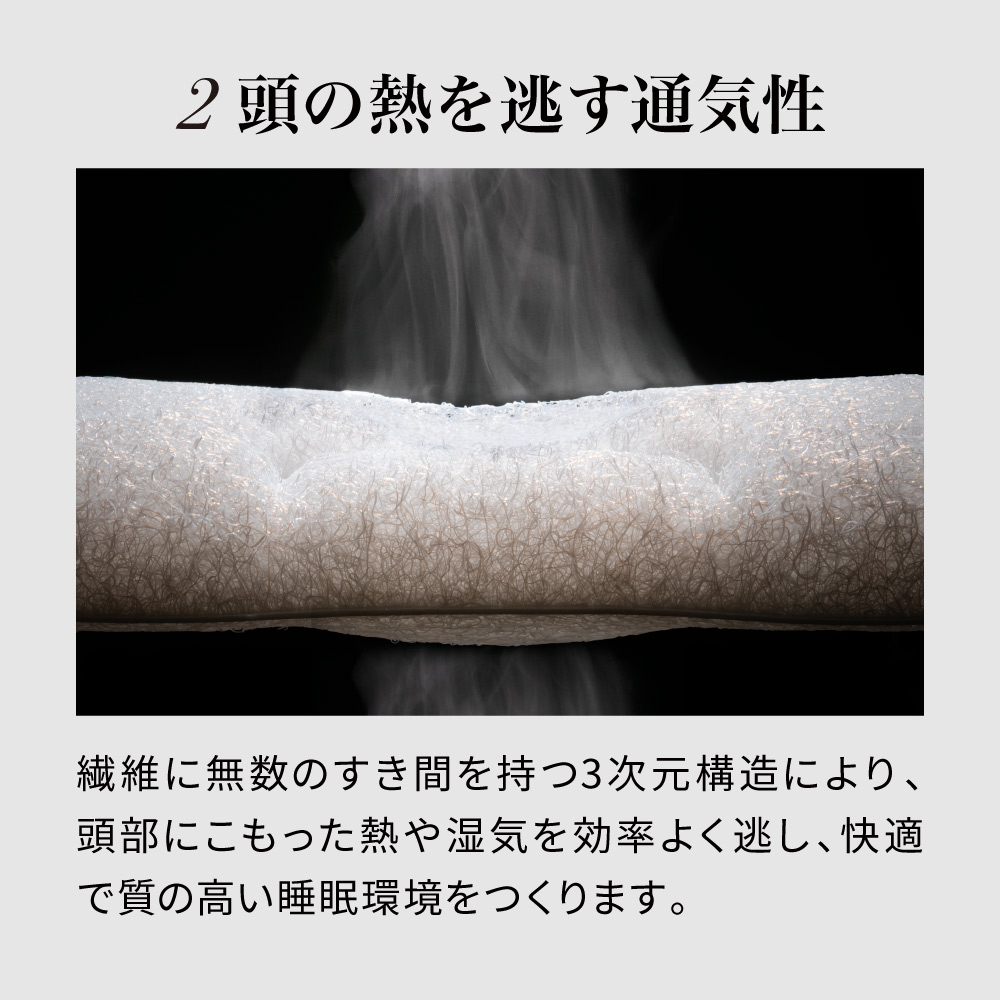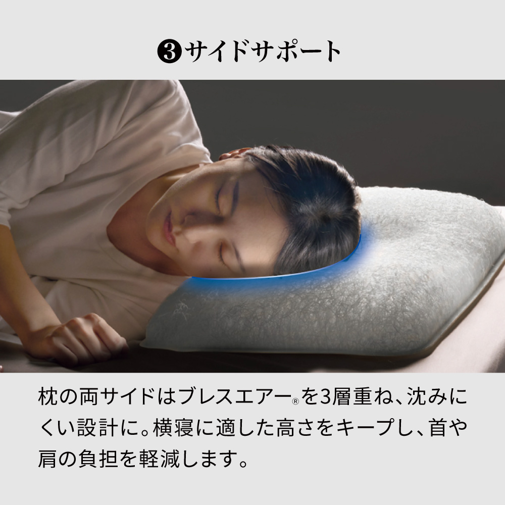 弾力性・通気性に優れる素材「ブレスエアー」の特性を活かし、眠りと目覚めの好循環を生む枕。