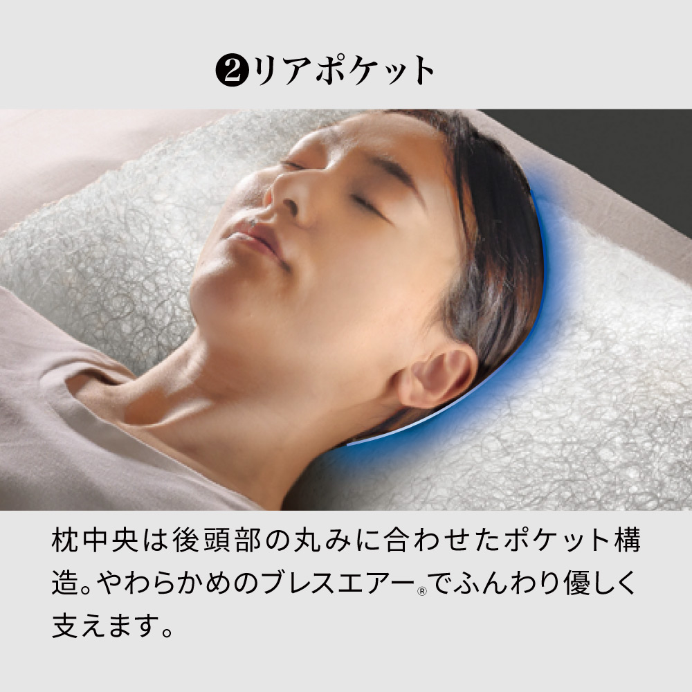 明日の活力を生み出す ブレスエアー コンフォートリッチピロー 【お得なピローケース付き】 枕 624401