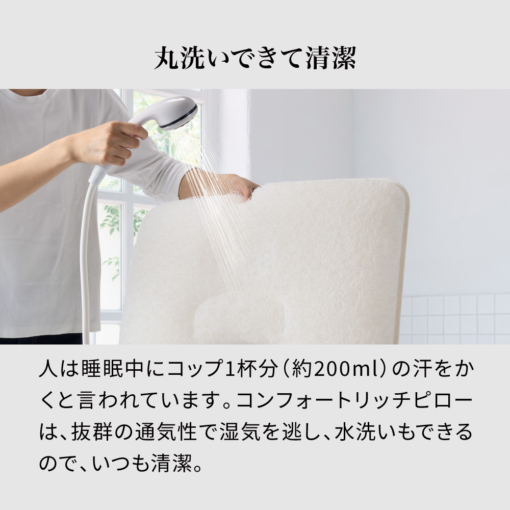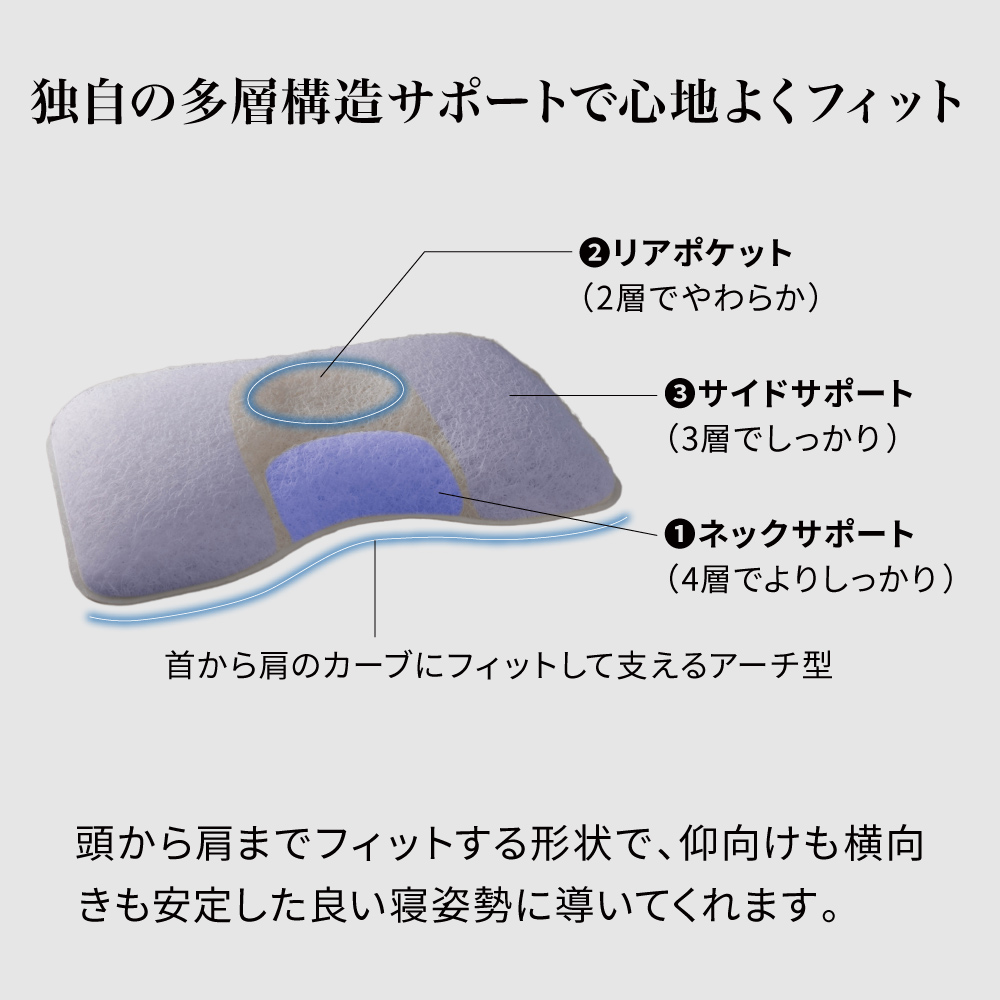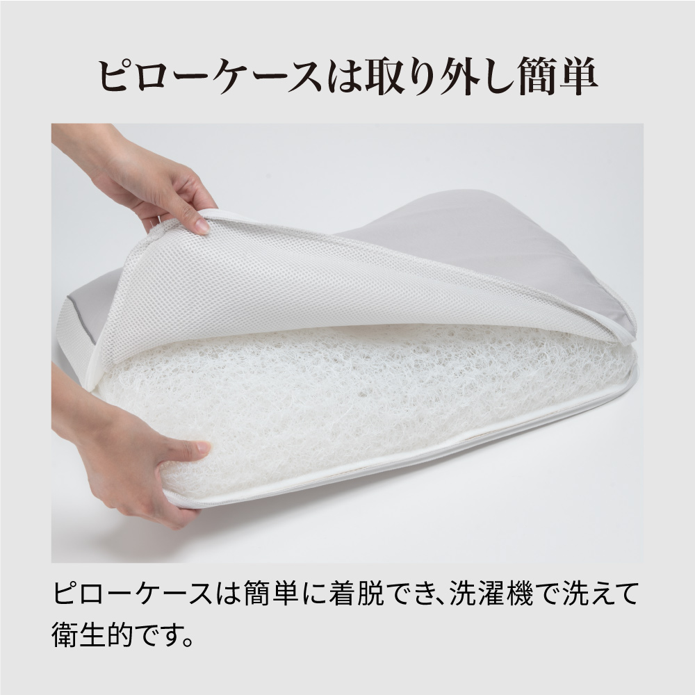 通気性の良さを保ちつつ、肌触りとフィット性◎の専用ピローケース付き