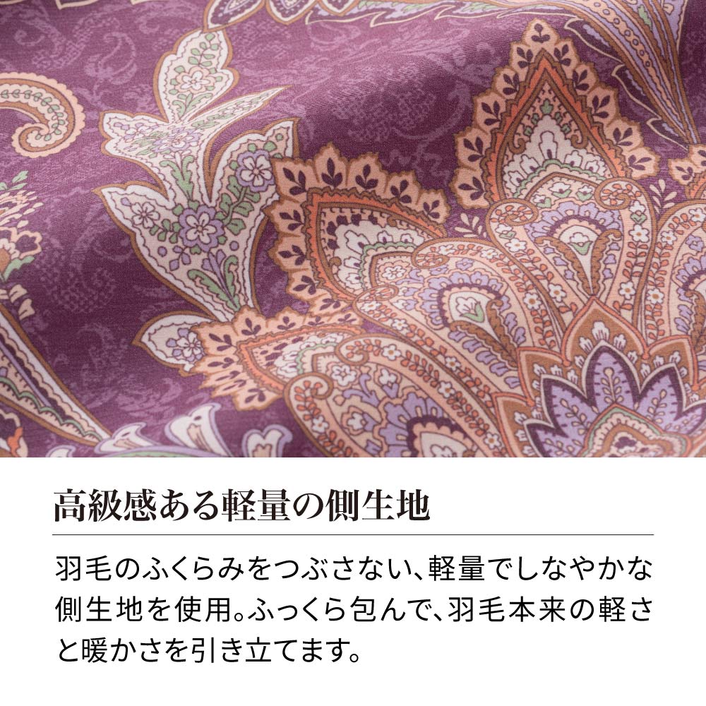 羽毛のふくらみをつぶさない、軽量でしなやかな側生地を使用。ふっくら包んで、羽毛本来の軽さと暖かさを引き立てます。