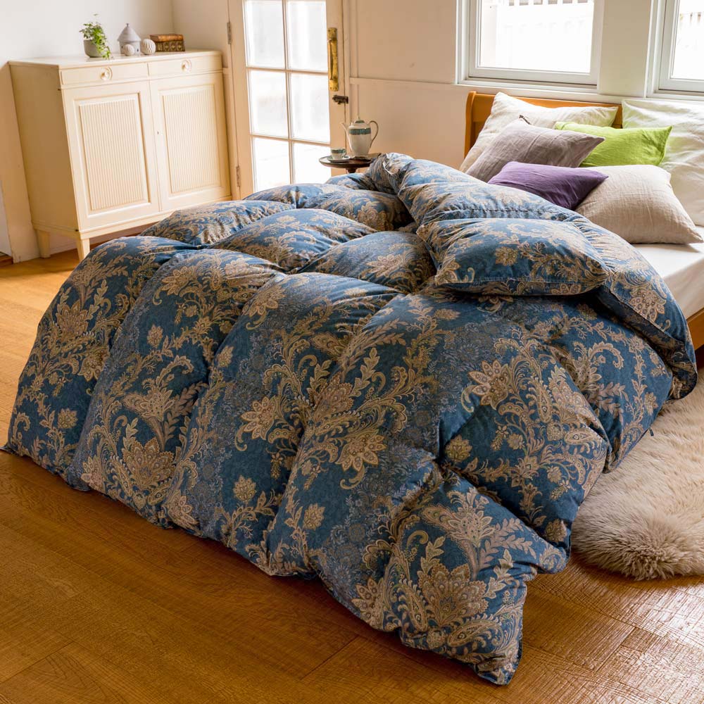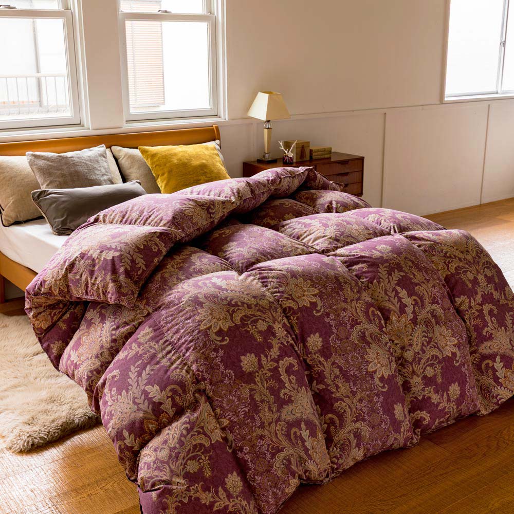 かさ高性に富んだ高品質な羽毛を、シングルで約1.1kgも贅沢に使用。圧倒的なボリュームで、ずっと包まれていたいふっくら感と暖かさです。