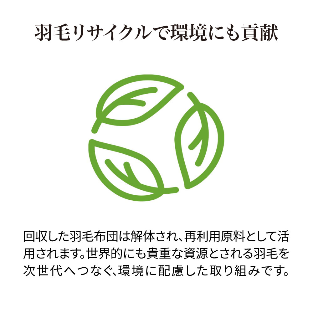 不要な羽毛布団を処分するにもお金がかかる時代に、うれしい高額下取りサービスを付けたディノスだけの特別企画もご用意!※本品は下取りなし、通常価格での販売です。下取りサービス付きのご購入は「おすすめ関連商品」からお求めください。