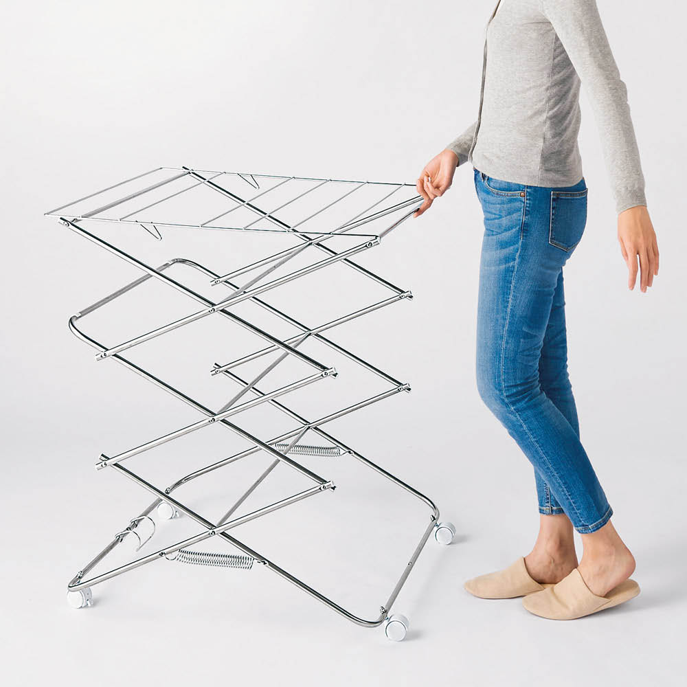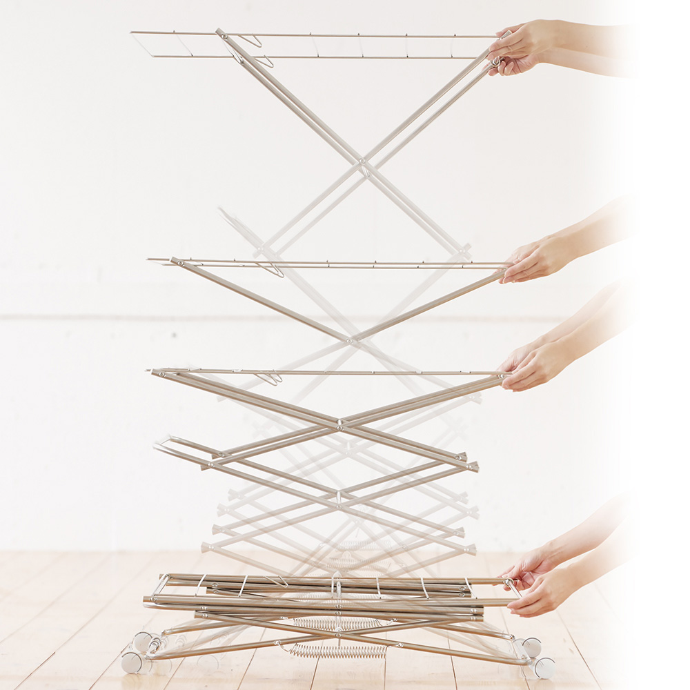 収納時はすっきりコンパクト、広げればたっぷり干せるワイド設計