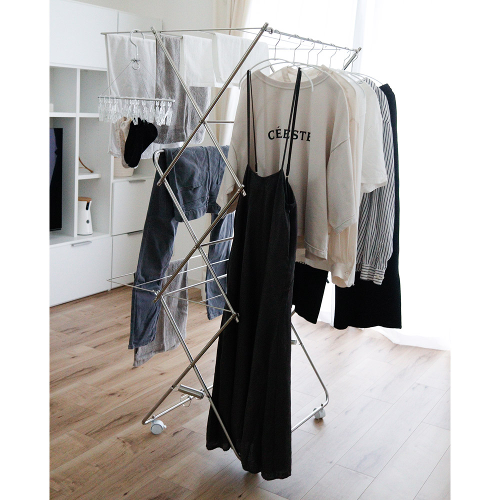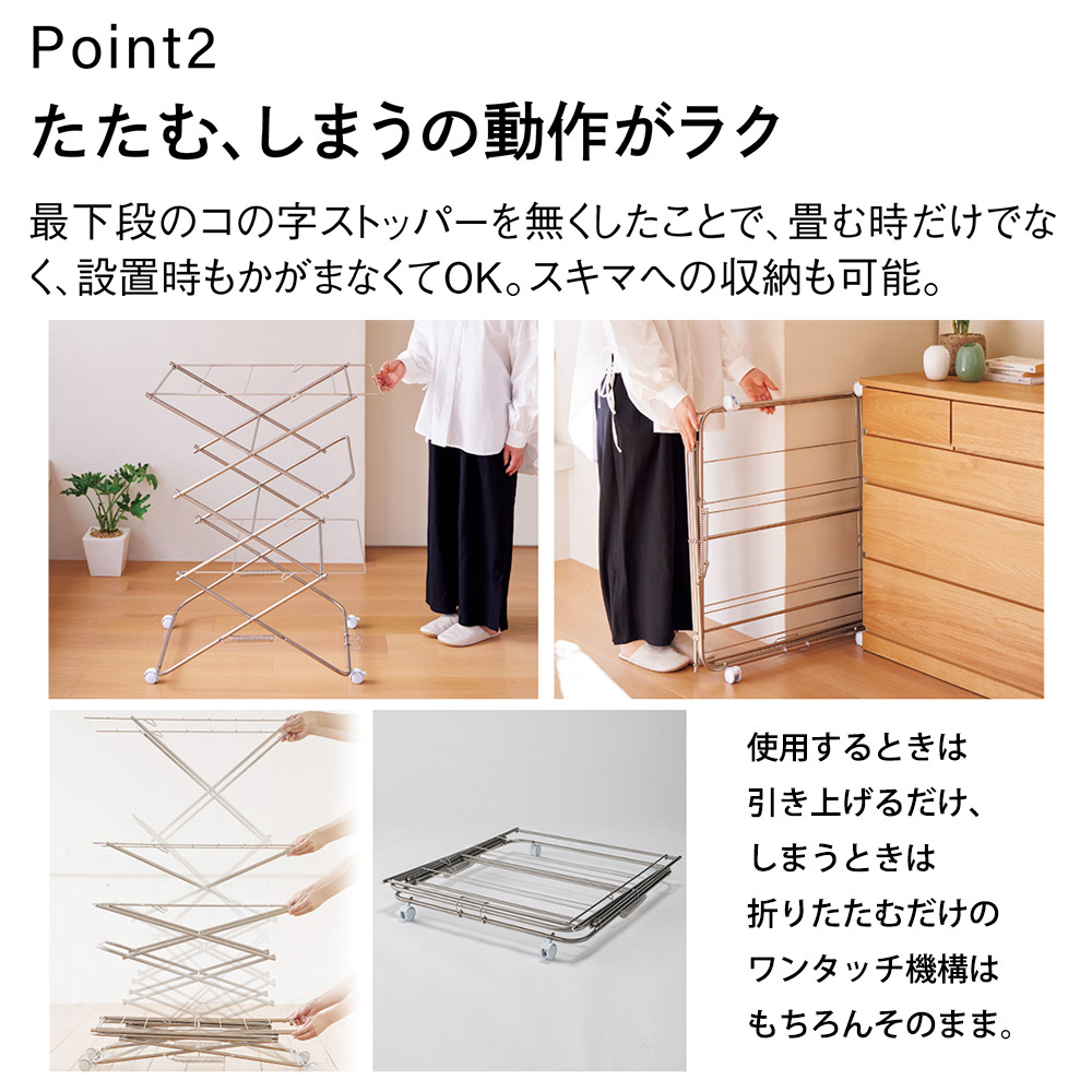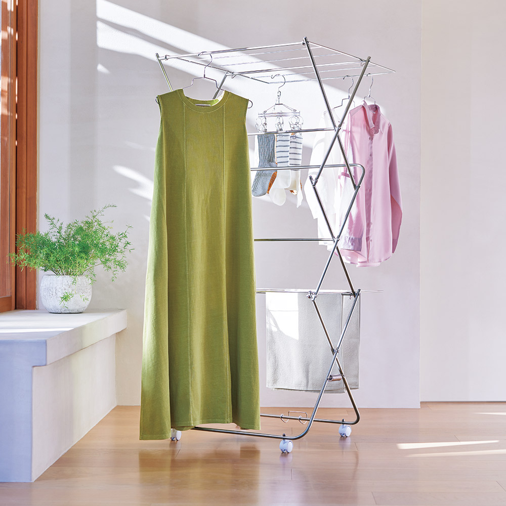 瀧本真奈美さんとつくったマキシ丈ワンピースも干せるステンレス製室内物干し 室内物干し 洗濯用品 物干し 622201