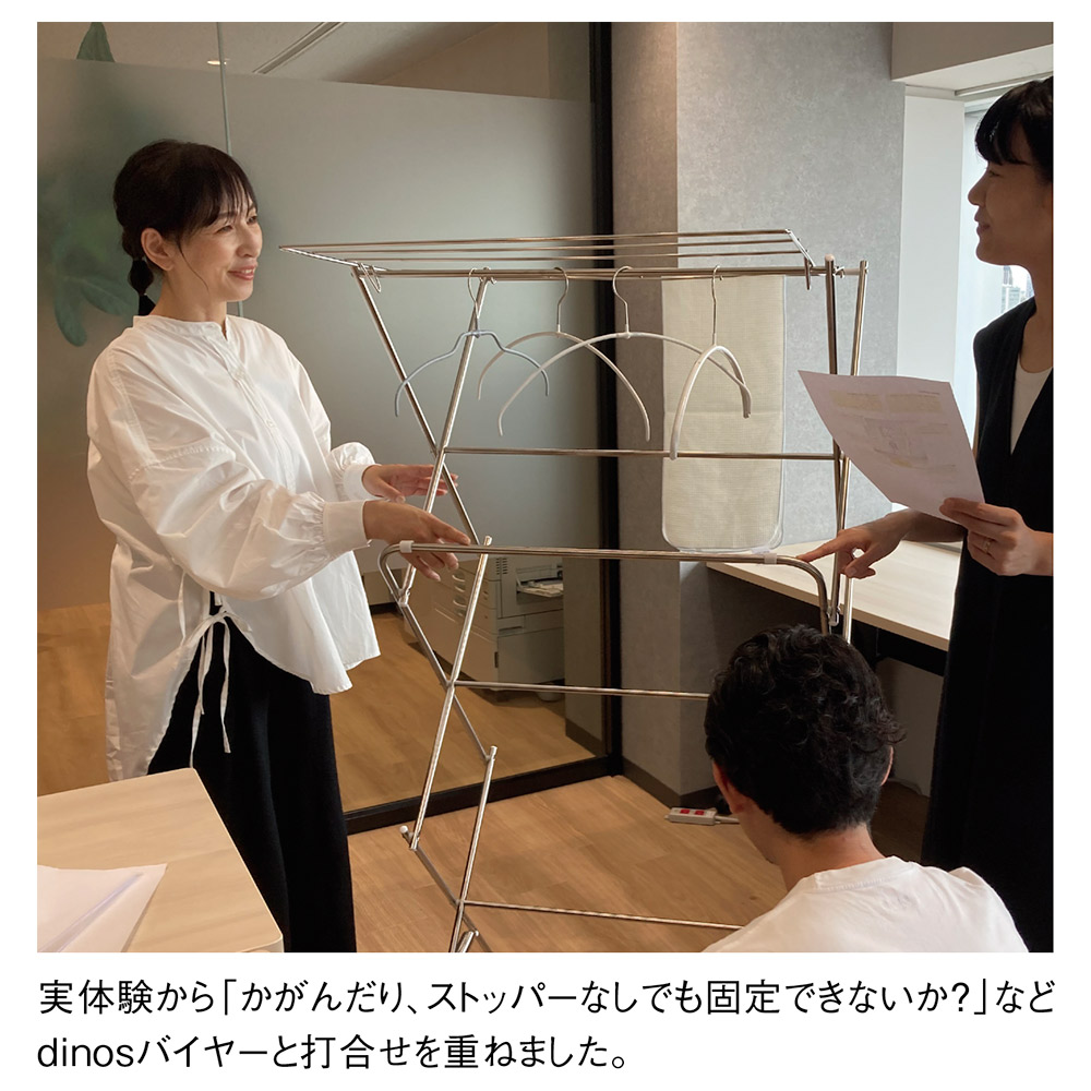 くらしアドバイザー・瀧本真奈美さんは実際に「ワンピース物干し」従来品のユーザー。気に入っている商品だからこそ、消費者目線で「ここがこうだったらいいのに…!」という思いをすべて入れ込みました。