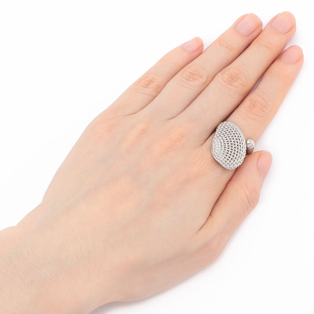イタリア製を中心にトレンドライクなシルバージュエリーを提案する「アンティエーレ」のラインナップ。 メッシュ状のドロップモチーフが印象的!指になじむ着用感も秀逸です。商品画像の説明