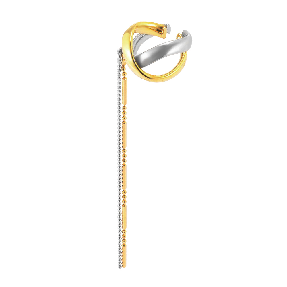 ころんと立体的なリングパーツにそれぞれ異なるロングチェーンを組み合わせたチャーミングなイヤーカフ。商品画像の説明