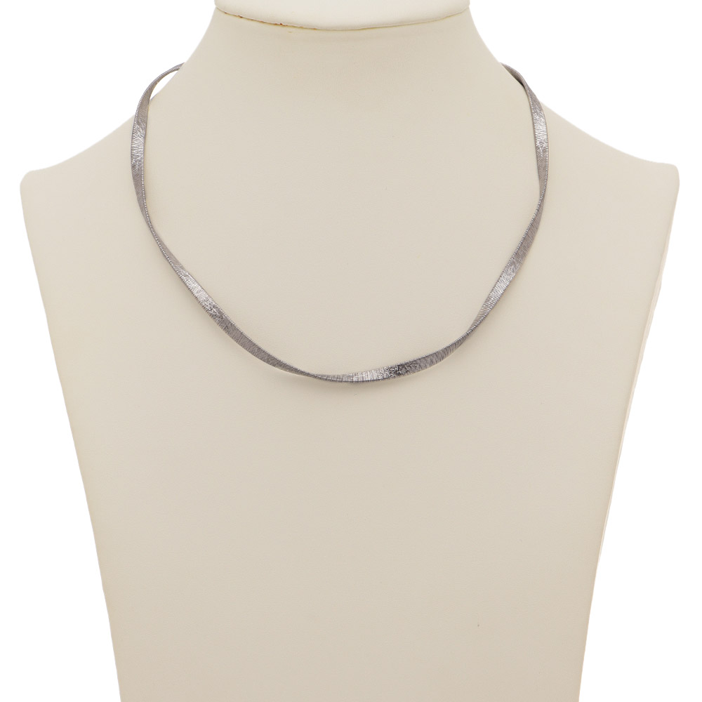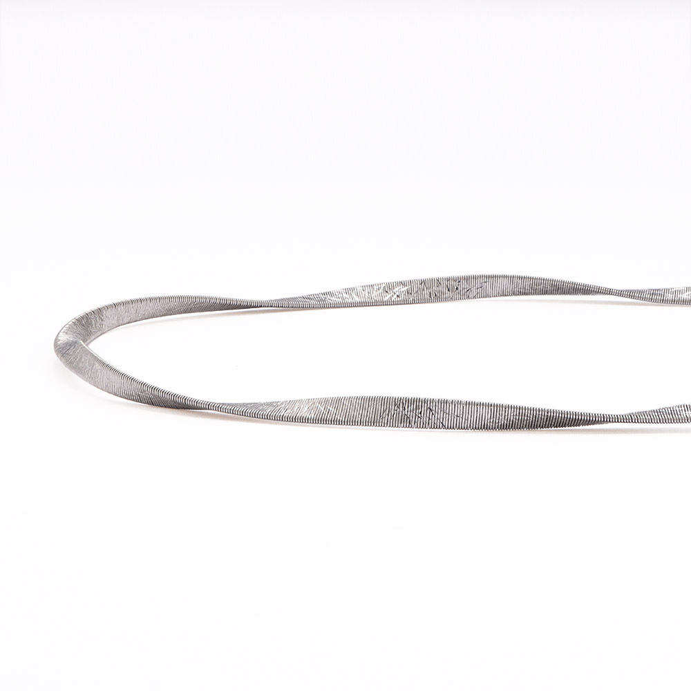 モダンなインポートシルバーブランド「アンティエーレ」。ひねりとカットを加えたしなやかなオメガタイプのネックレス。