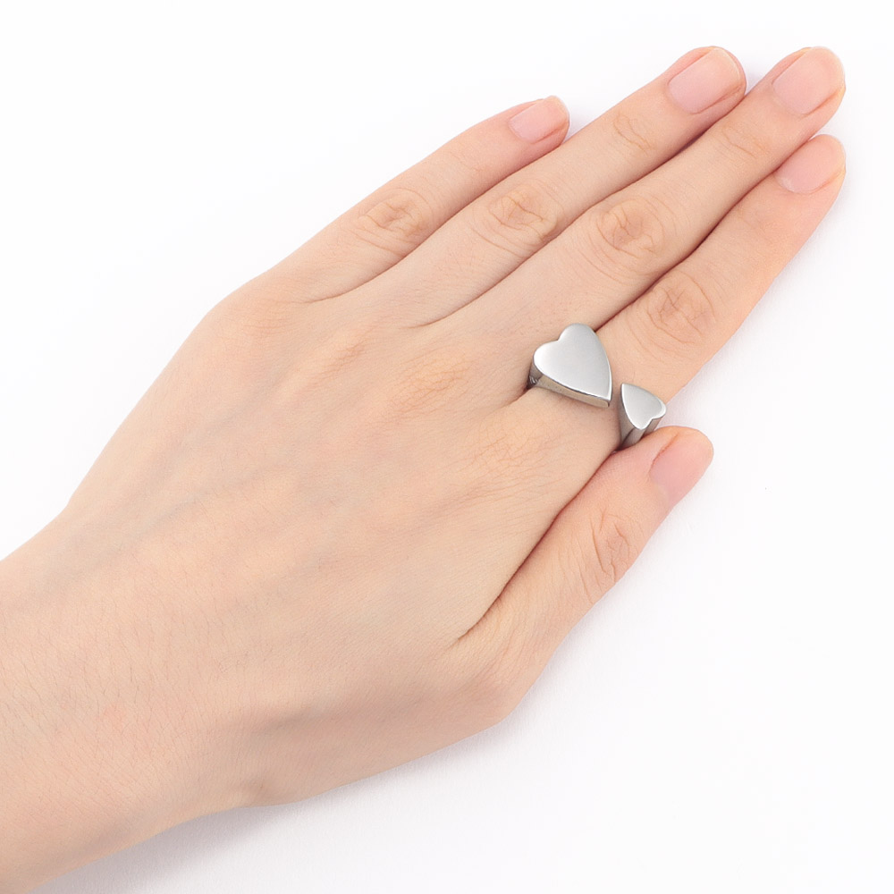 大小のハートをモダナイズしたフラボッソのリング。商品画像の説明