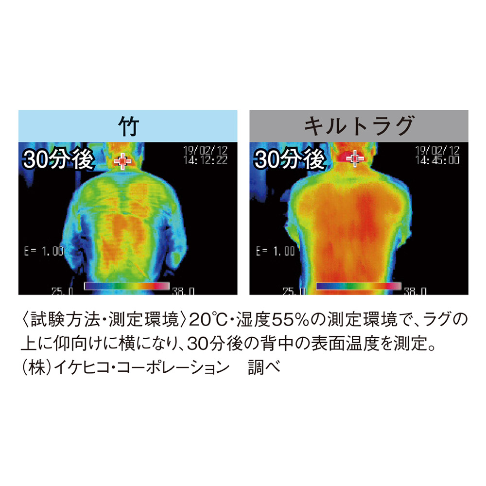 竹は熱伝導率が高いため、ラグと接触している部分の温度を素早く発散してくれます。そのため、べたつく梅雨や夏の時期でも快適に過ごせるラグとして適しています。