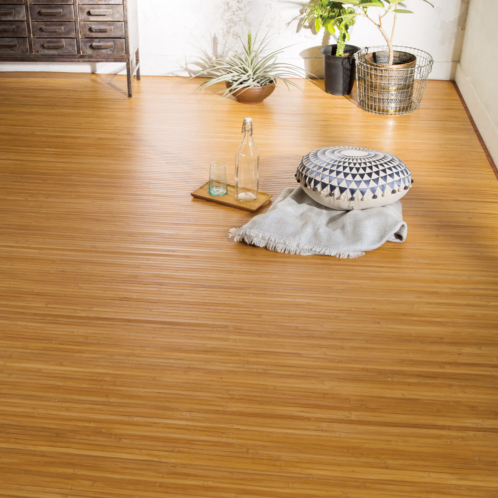 このラグは、1枚の幅が約17mmで、糸でつないだりしていなく、よりシンプルに作られているため、天然の凹凸などはあるものの、歪みが少なくなるよう丁寧に仕上げています。(※天然の竹を使用しているので、色やサイズに若干の誤差が生じる場合があります)