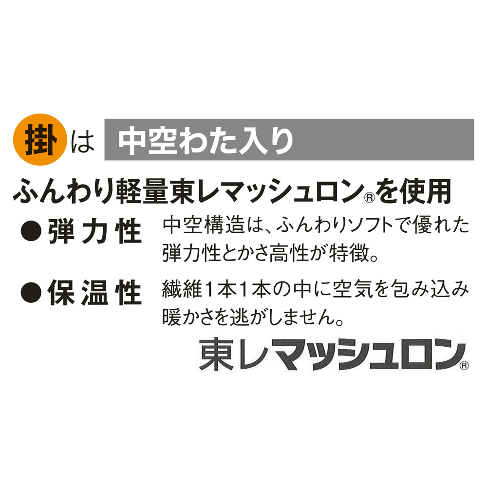 中わたをたっぷりと使用しているのでふんわり柔らかく、あたたかくお過ごしいただけます。