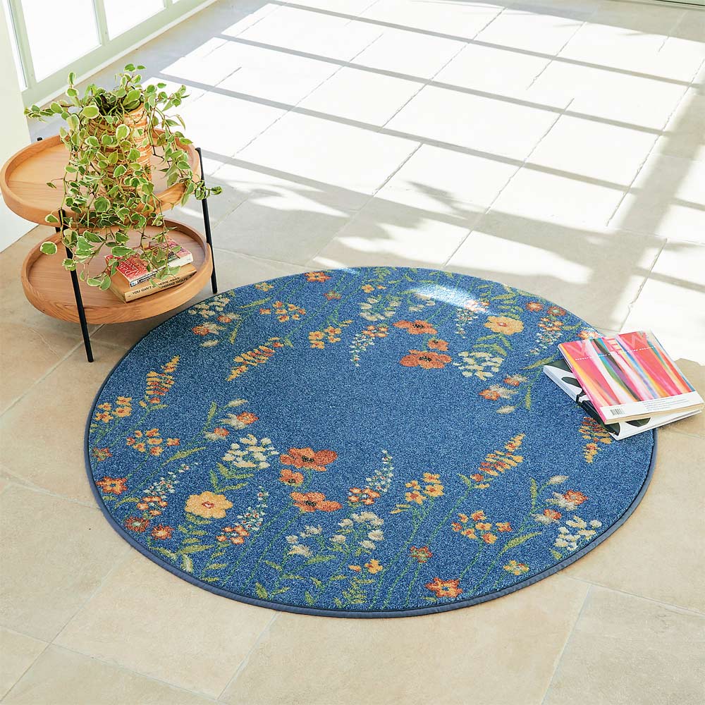 ≪円形・約径160cm≫ ベルギー製ウィルトン織 花柄ラグ 円形ラグ カーペット ラグ マット 625806