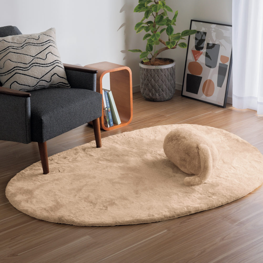 (ウ)ミルキーベージュ(写真はオーバル約120×160cm) ナチュラルなオーバルのラインがやさしい空間に。※お届けはふかふかラグのみになります。