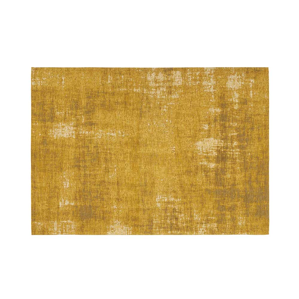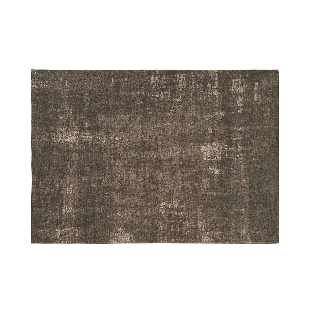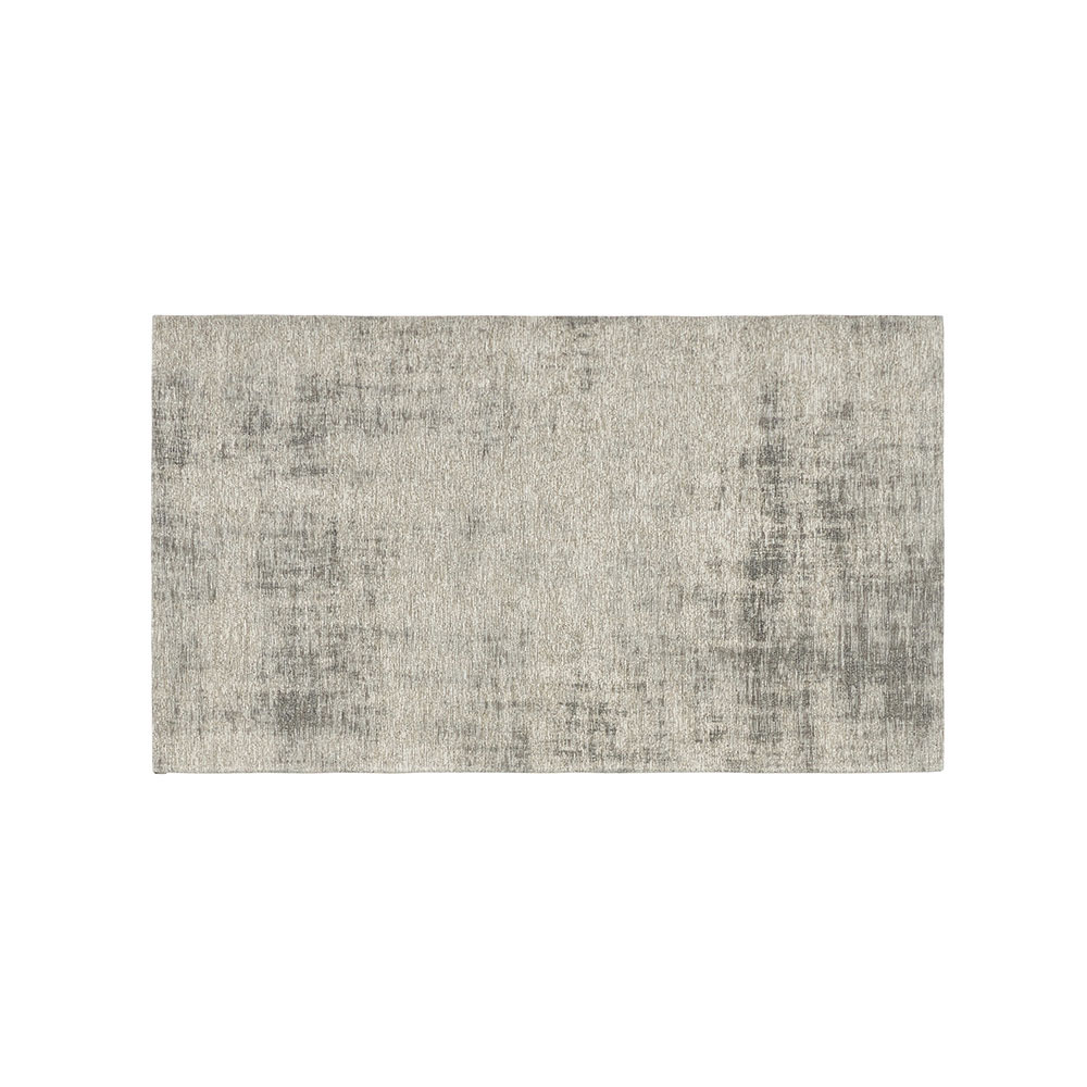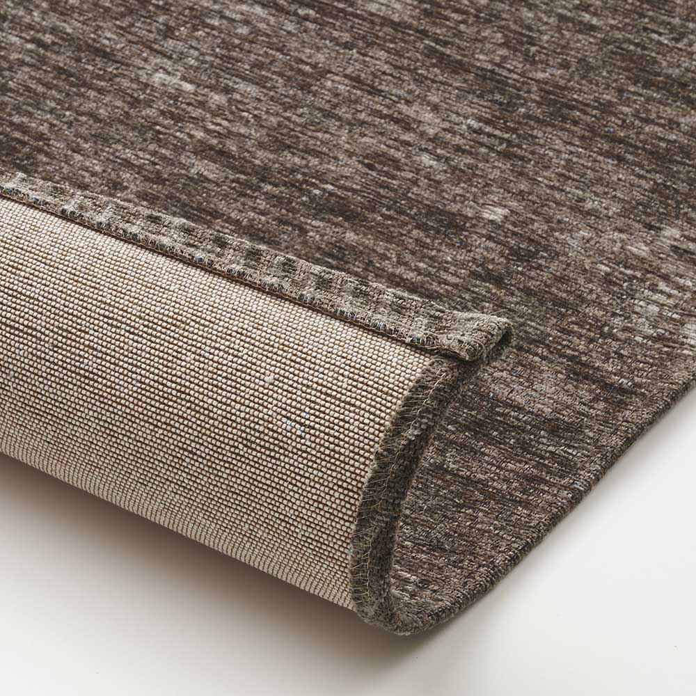 太く柔らかい綿毛のようなシェニール糸を緯糸に、色糸を縦糸にしジャガード織機で織り上げたラグです。擦れ調の色合いを濃淡ミックスのシェニール糸を使って織りで表現しました。
