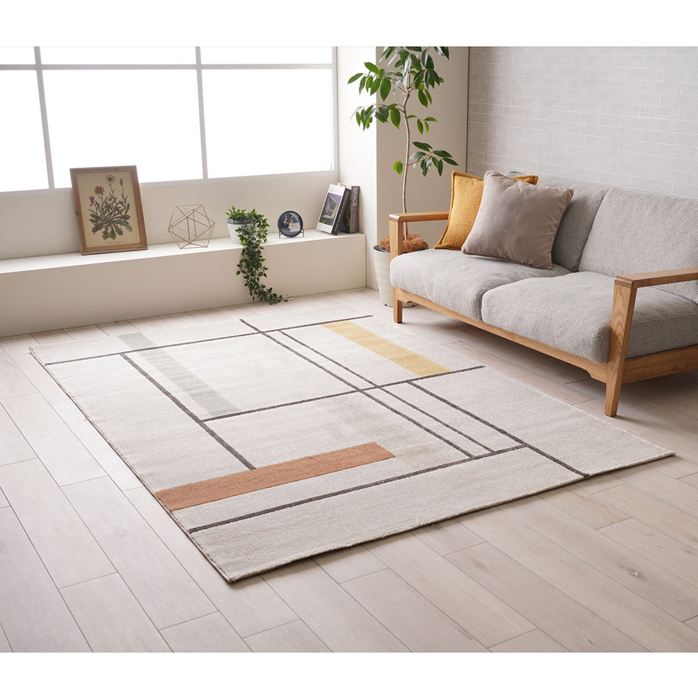 パイル糸に熱処理(ヒートセット加工)を施し、更に撚り加工を施すことで、やわらかな感触と弾力のあるふみ心地に。また、遊び毛が出にくくホコリが立ちにくいので、お掃除もラクに。●シュリンク糸を織り込み